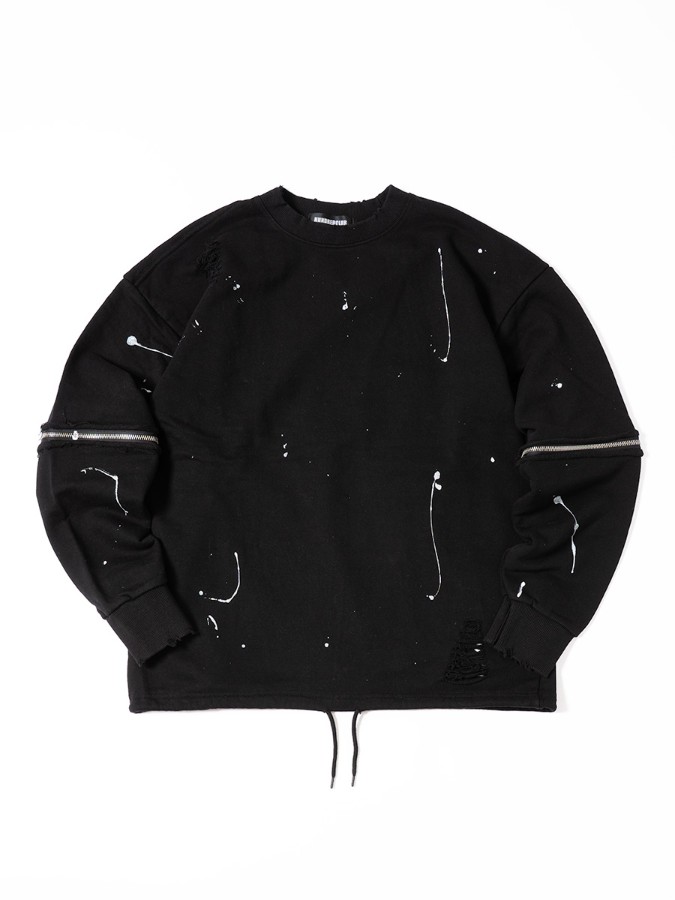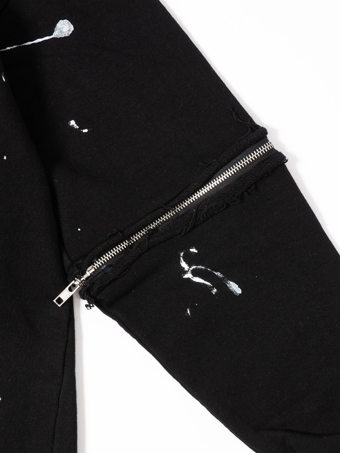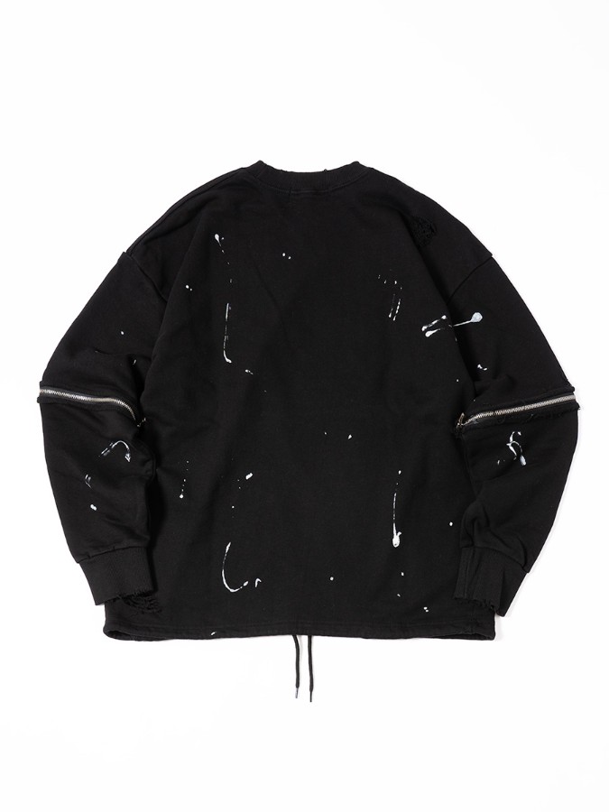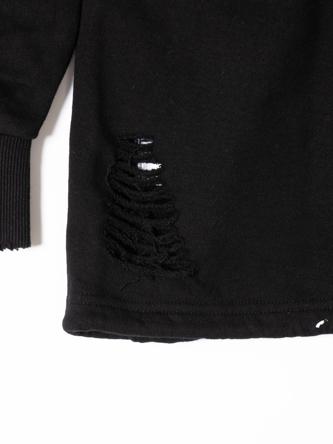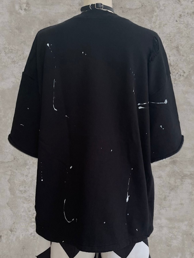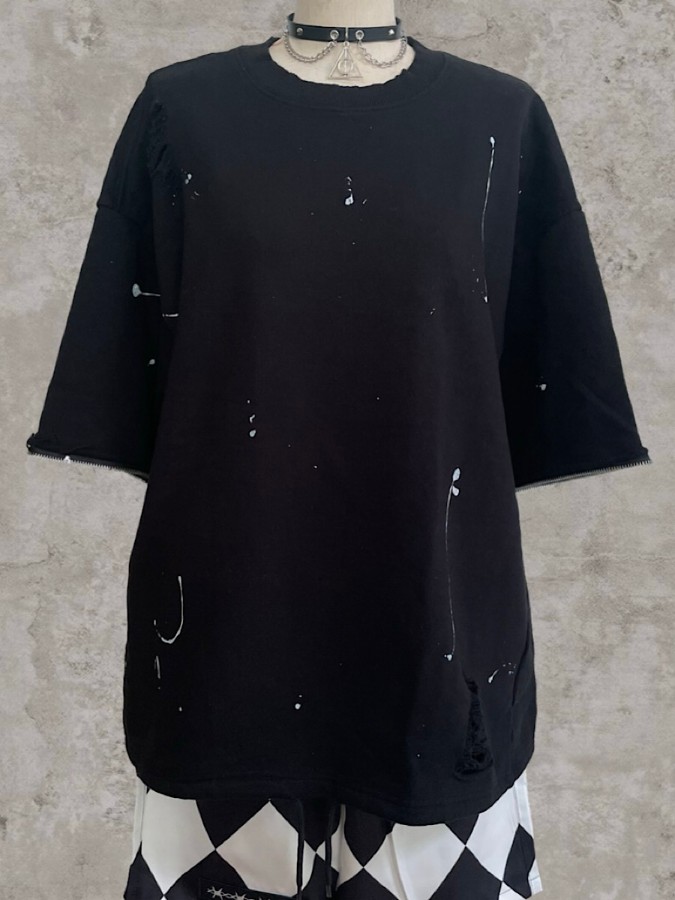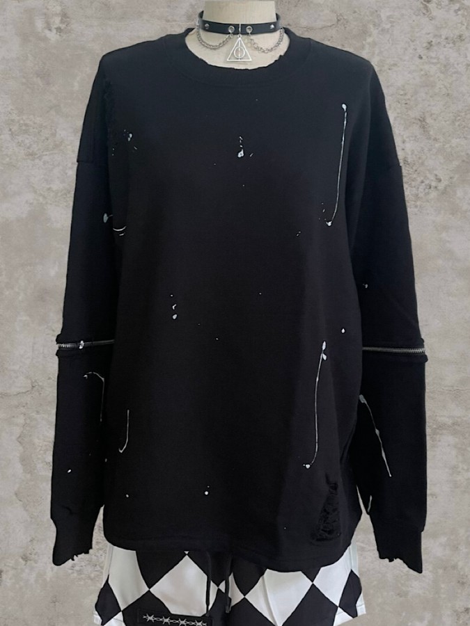 袖のジップが特徴のダメージプルオーバー。長袖と半袖の両方楽しめるユニークなデザインでロングシーズン使えるアイテム♪ゆるっと着こなせるビッグシルエットで男女問わず着用可能です。