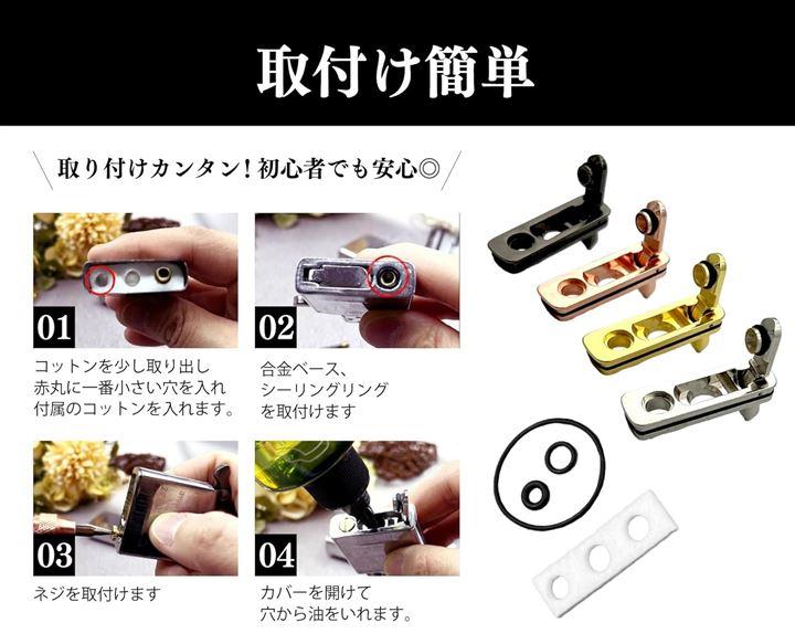 本製品は、Zippoの底面から発生するオイルの蒸発を抑える密閉型パーツです。