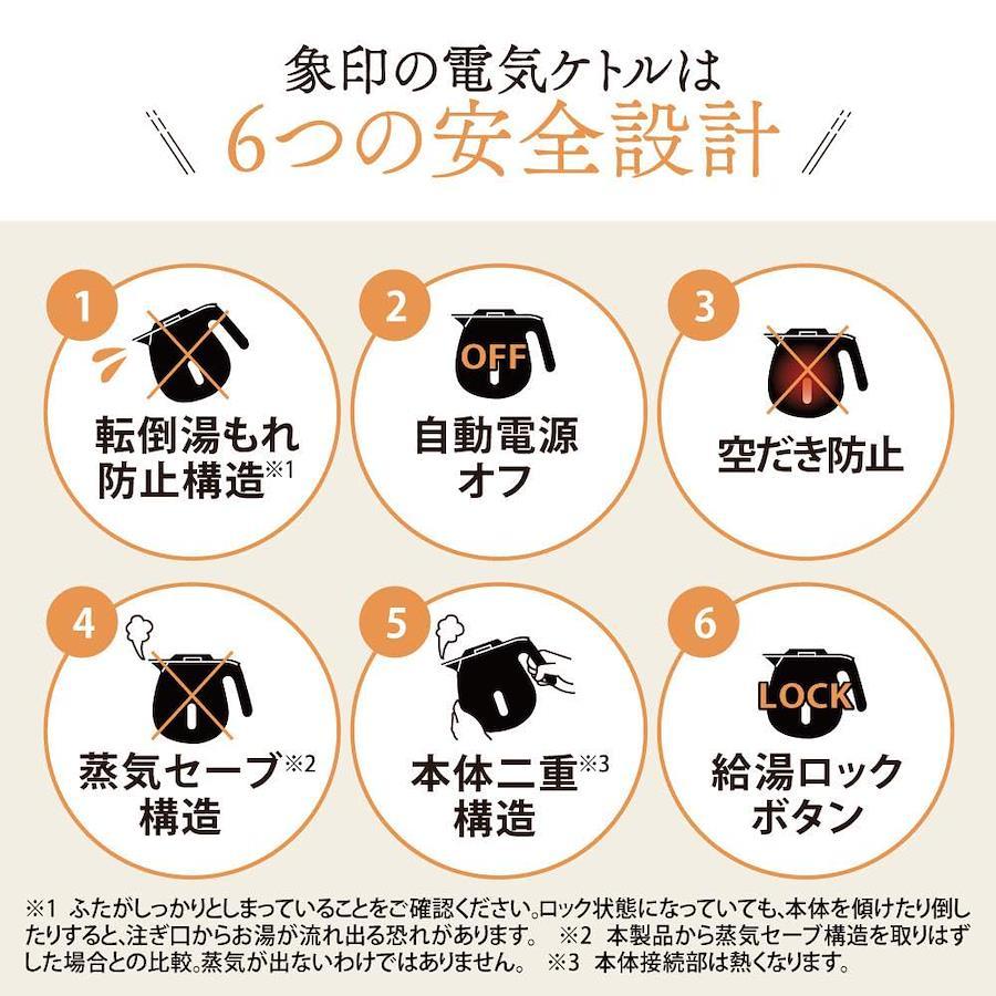 3営業日以内に発送≪新品未開封品≫:6つの安全設計「転倒湯もれ防止構造」「本体二重構造」「自動電源オフ」「空だき防止」「給湯ロックボタン」「蒸気セーブ構造」