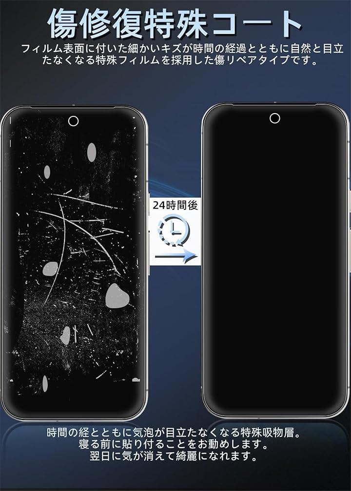 「柔軟な素材&バブルフリー」ご注意:保護フィルムは強化ガラスではなく、高品質の熱可塑性ポリウレタン(TPU)、柔軟な材料で作られており、スクラッチ防止、傷つきにくい、携帯電話の画面の曲がったエッジをカバーすることができ、傷に対して保護を提供します。