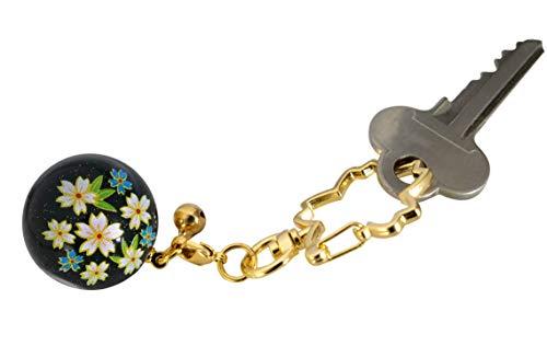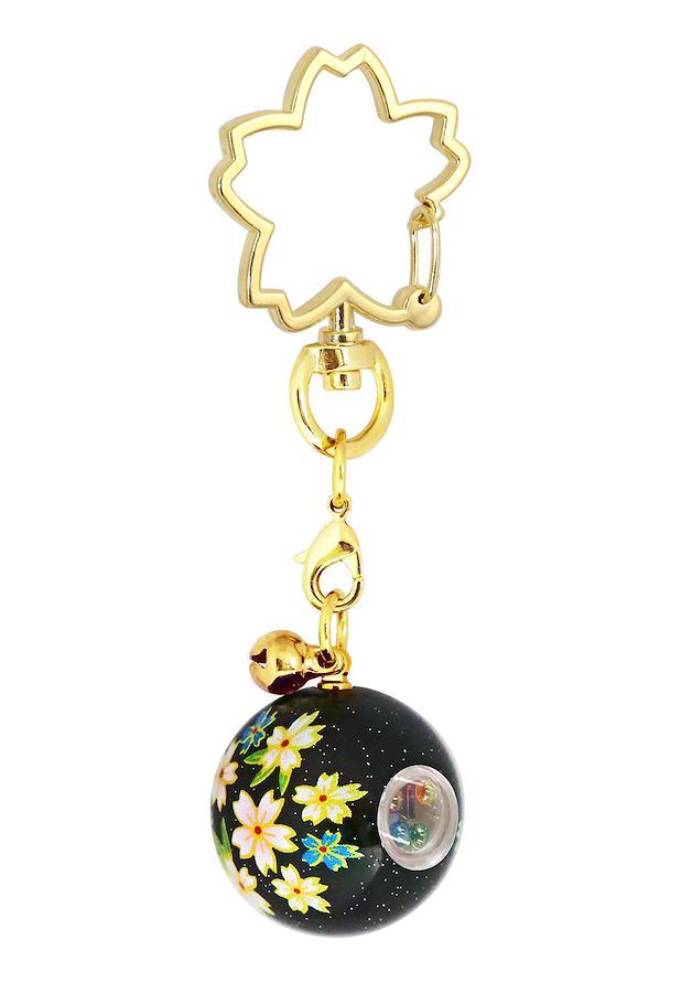桜の形のフックにキュートな万華鏡(直径23㎜)が付いたキーホルダー。漆風のシックなカラーに雅な花柄がかわいい!小さな鈴(直径8㎜)付き。万華鏡(球体)の穴をのぞけばカラフルなガラス玉が光に反射して癒されます!! ※球体を動かしたり、コツコツ叩くとガラス玉が動いてより綺麗です。万華鏡は小さなフックで付けられているので取外しが可能です。鈴なども取り付けられます。桜のフックは細身ですが、強度の高い丈夫な金属を使用しています。万華鏡はプラスチック製。原産国 日本