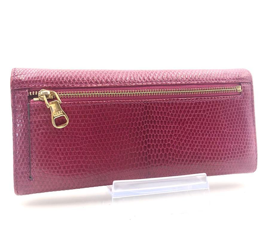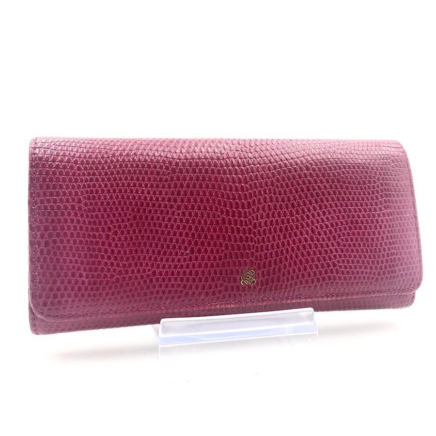 ■Rare■LOEWE Anagram Long Wallet, Lizard Leather, Genuine Leather, Made in Spain, Engraved, Pink, Gold Hardware, Dust Bag, Box, and Card Included, Women's