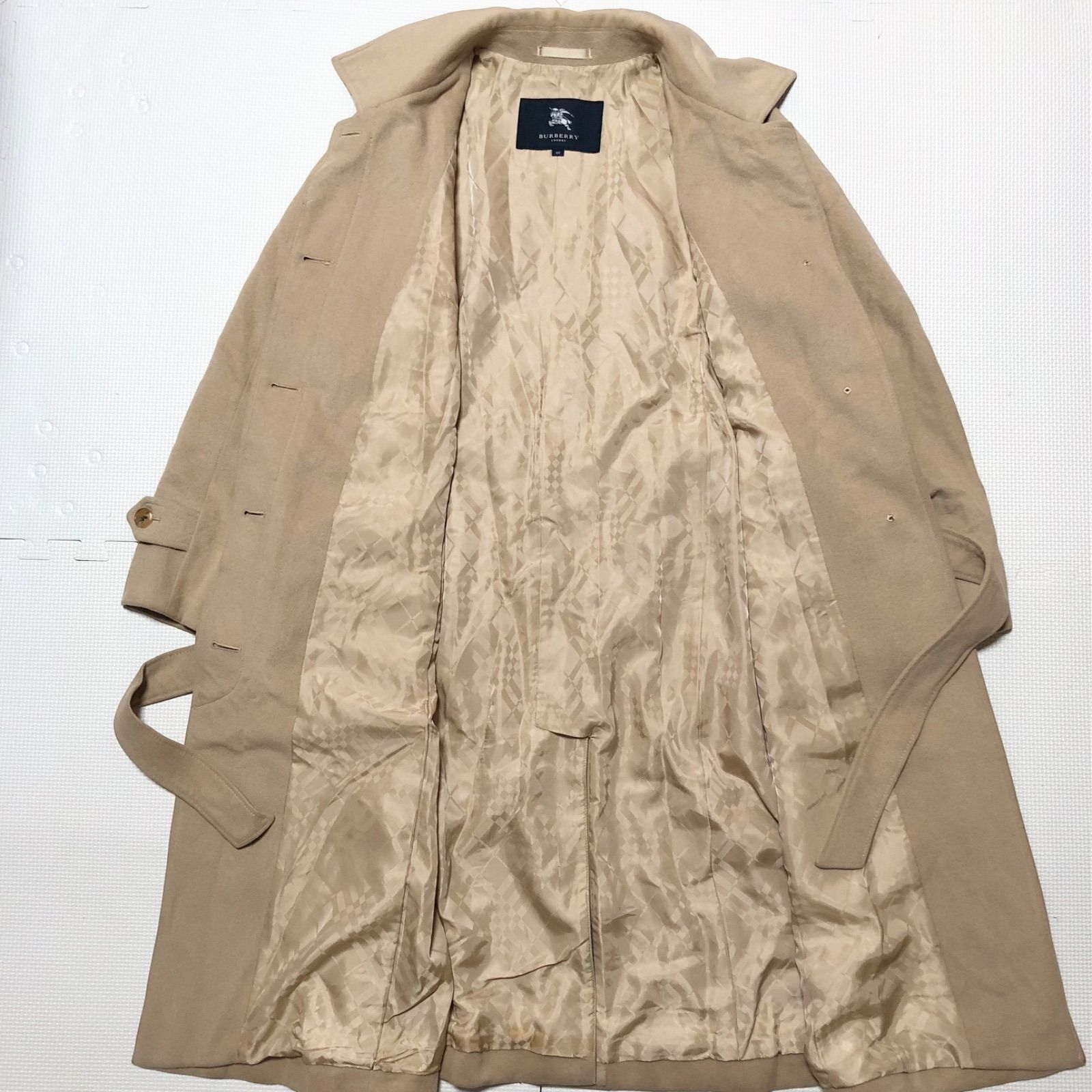 ■商品概要BURBERRY LONDON バーバリーロンドンステンカラーコート ロングコートベルト ベルテッド リボンベルトsize40 (M) ※詳細は下部寸法値を必ずご確認くださいベージュ×裏地シャドーノバチェック総柄ウール(アンゴラ65%)シングル5つボタン比翼仕立て水牛ボタン裏地あり秋冬三陽商会レディースラグジュアリー 高級 ハイブランド