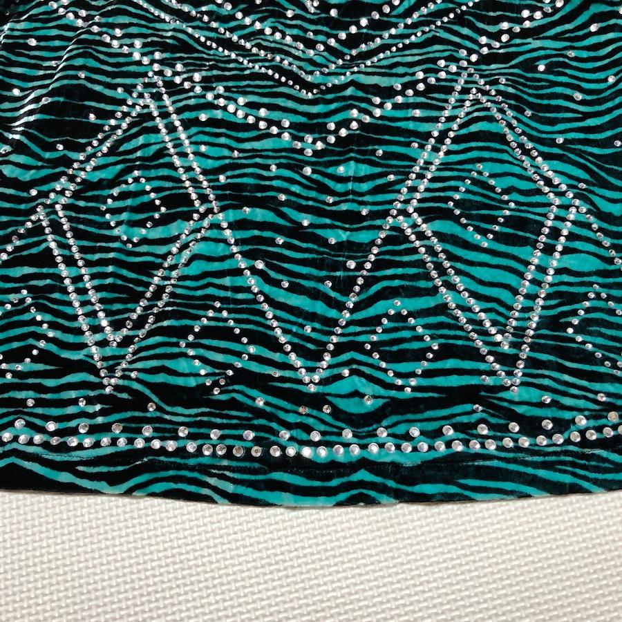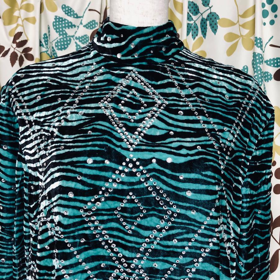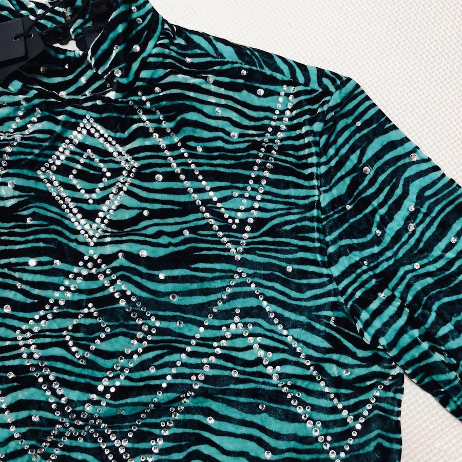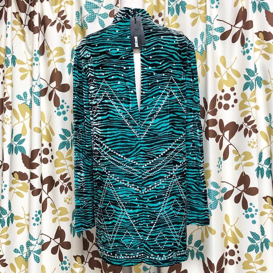■商品概要Just Cavali ジャストカヴァリ全面ラインストーン装飾付きベロアワンピース長袖ハイネックsize40(M) ※詳細は下部寸法値を必ずご確認くださいイタリア製後ろボタン開きひざ丈グリーン×ブラックジュエリー ビジューシルク混ビスコースレディースラグジュアリー 高級パーティー、結婚式、お祝い、式典、イベント