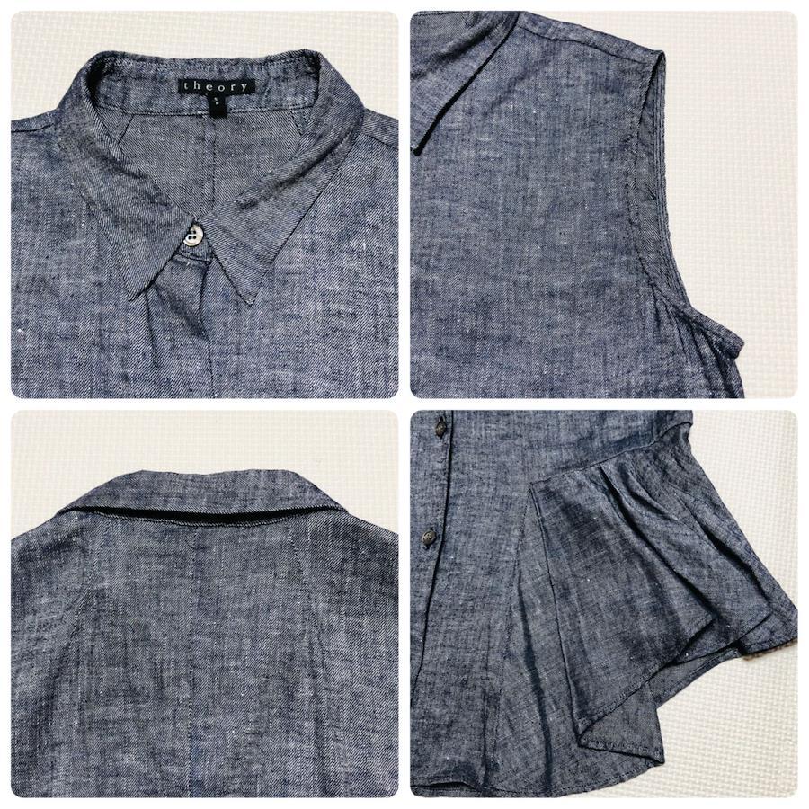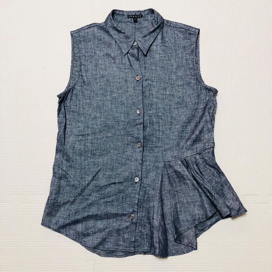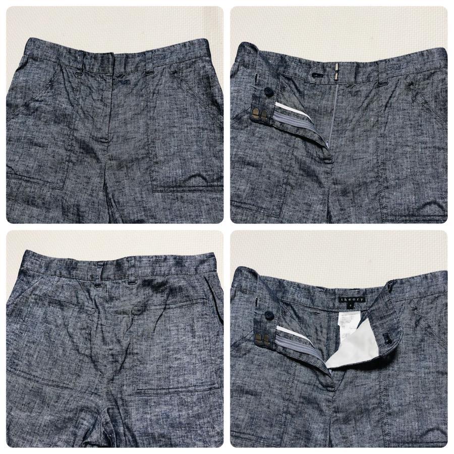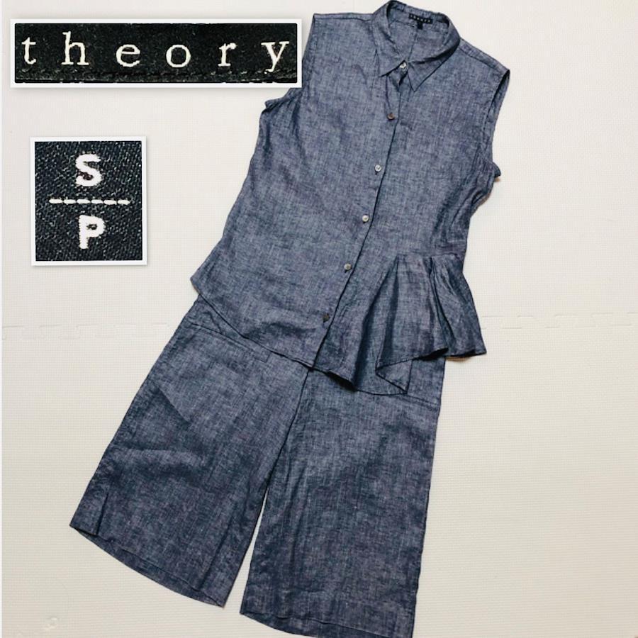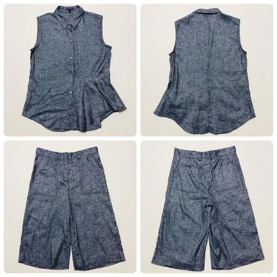■商品概要theory セオリーデニム パンツセットアップノースリーブブラウス+ひざ丈ハーフパンツ左裾フリルリネン混size S/P 0インディゴブルー日本製レディース春夏