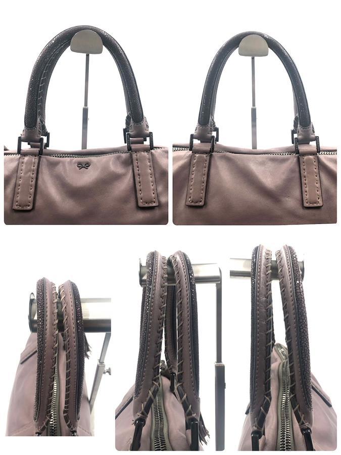 ■商品概要Anya Hindmarch アニヤハインドマーチ2way ボストンバッグ ショルダーバッグレザー 本革ロゴタッセルパープルグレーシルバー金具内側ロゴ総柄多機能 電話ポケット、音楽プレーヤーポケット、ミニポケットレディース肩がけ斜めがけ クロスボディ