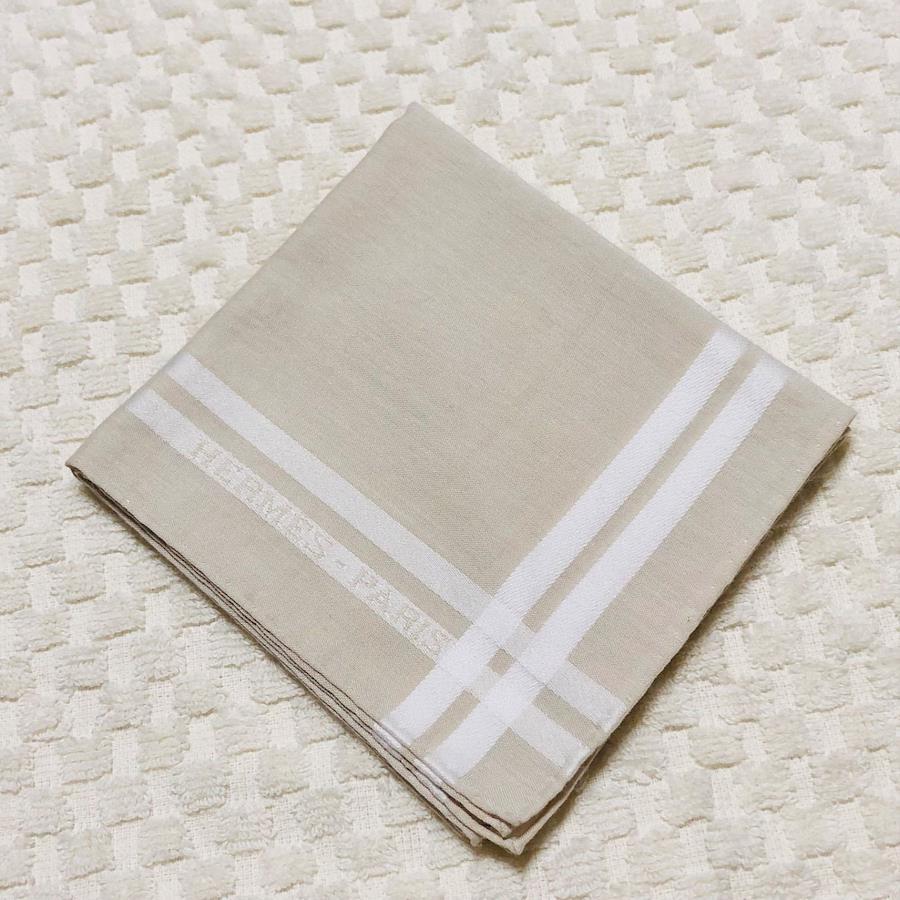 ■商品概要HERMES エルメスロゴ 二重ラインハンカチ ポケットチーフベージュ系ラグジュアリー 高級 ハイブランド