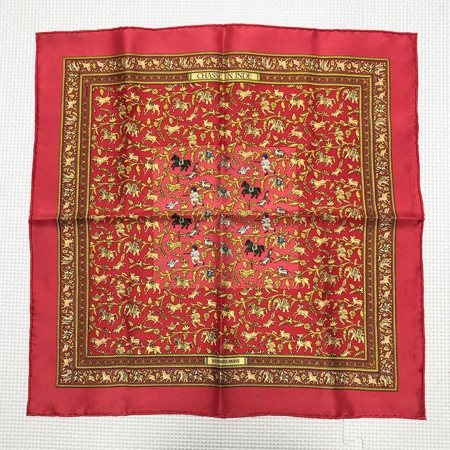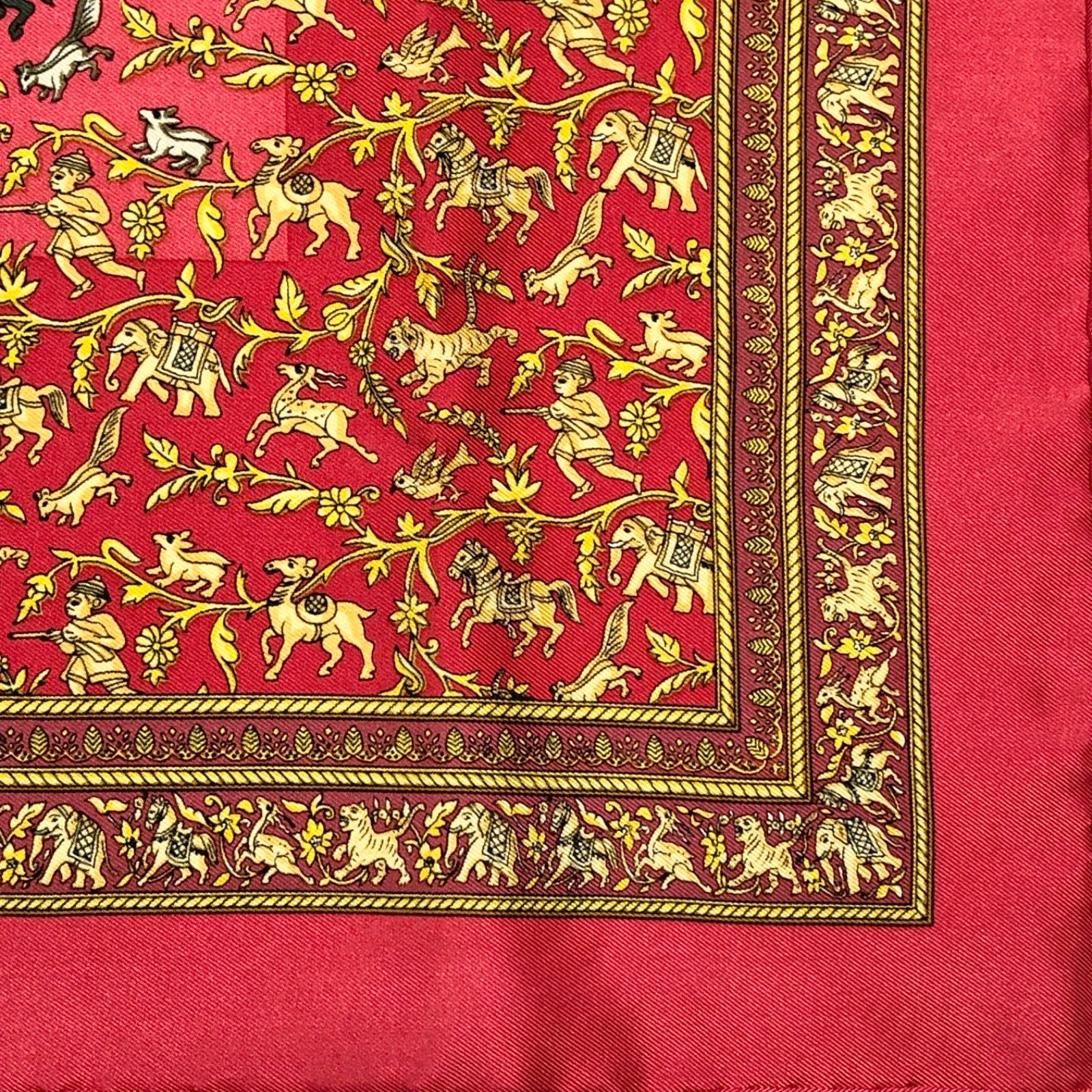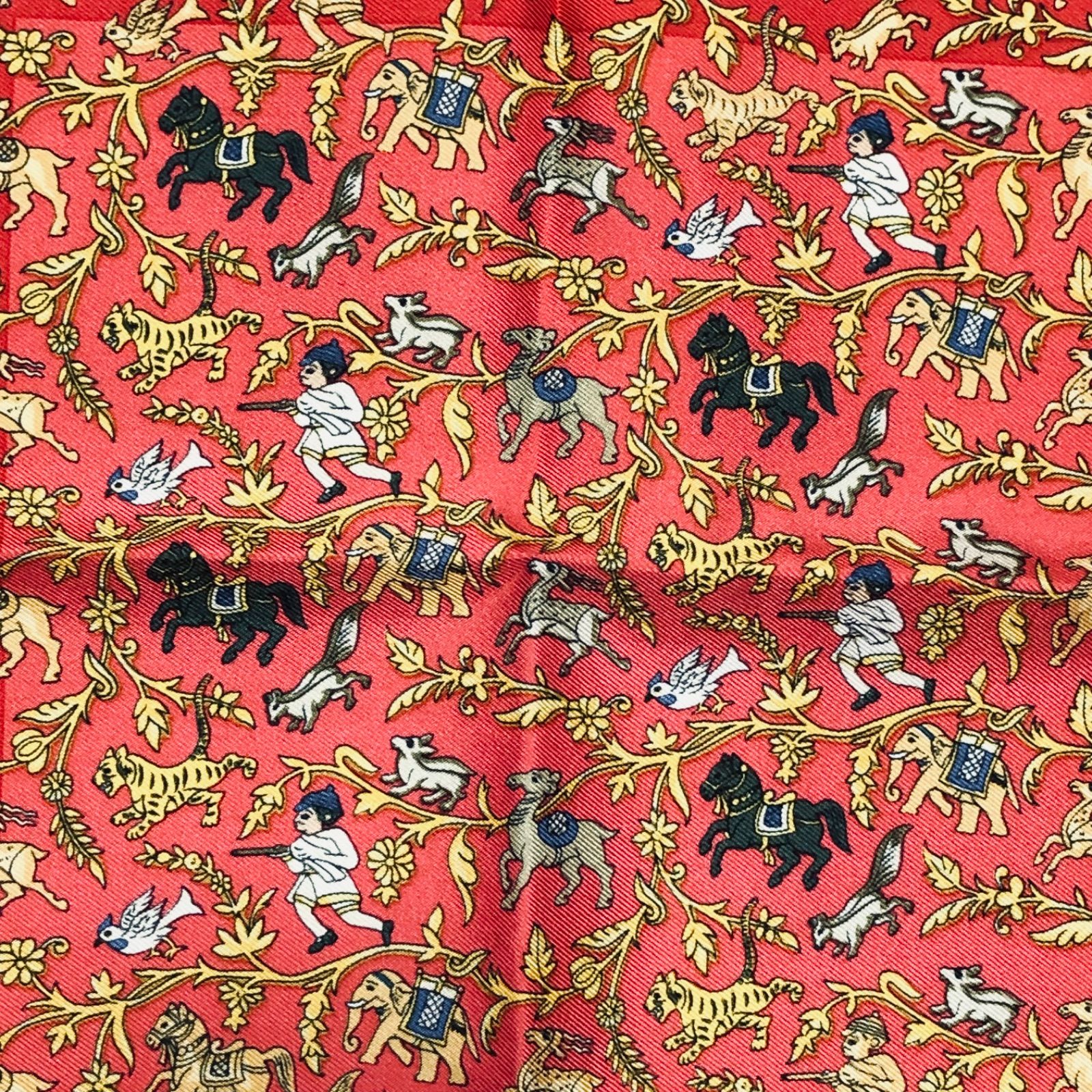 ■商品概要HERMES エルメスCHASSE EN INDE インドの狩猟カレ42 ミニスカーフ プチカレ チーフシルク100%フランス製レッド×ゴールド等箱付きパーティー、ラグジュアリー、結婚式、お祝い、式典、入学式、卒業式、入社式、イベント高級 ハイブランド