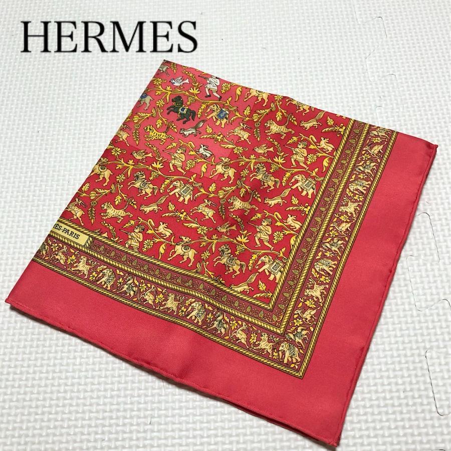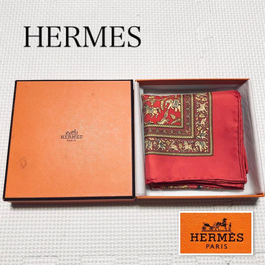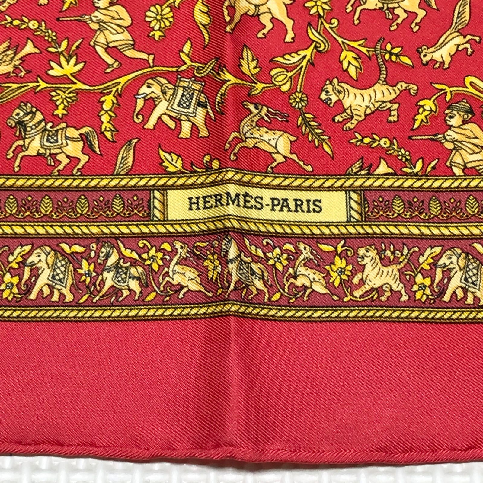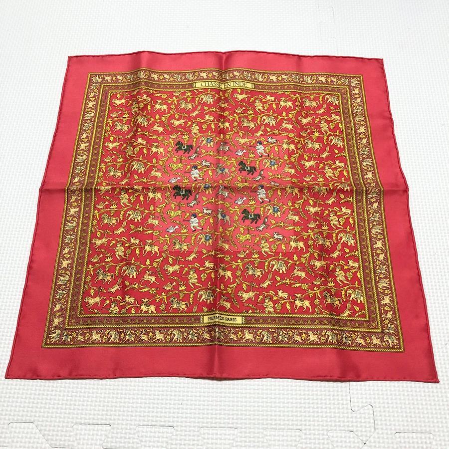 ■商品概要HERMES エルメスCHASSE EN INDE インドの狩猟カレ42 ミニスカーフ プチカレ チーフシルク100%フランス製レッド×ゴールド等箱付きパーティー、ラグジュアリー、結婚式、お祝い、式典、入学式、卒業式、入社式、イベント高級 ハイブランド