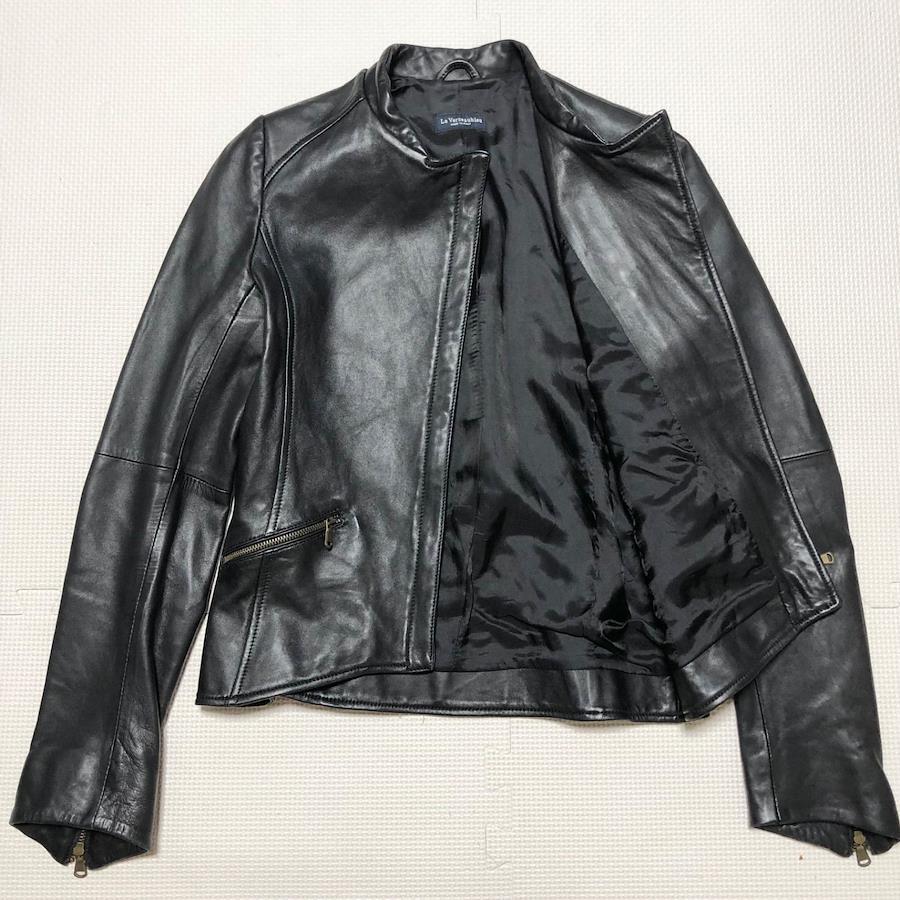 ■商品概要Le Verseaubleu ルヴェルソーブルー×大草直子コラボレザージャケット セミライダースジャケット羊革size38(M) ※ライダースなので小さめです。詳細は下部寸法値を必ずご確認くださいイタリア製ブラックレディース外観はダブルですが、使い勝手はシングルと同じ、珍しいデザインのライダースです。