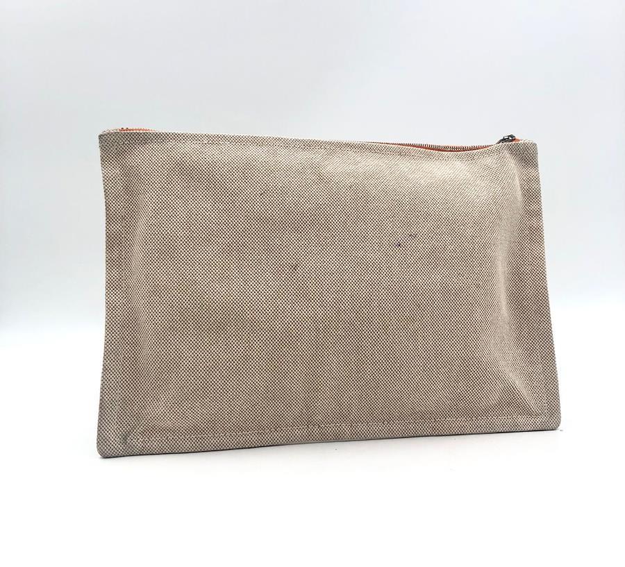 ■Rare■HERMES New Yachting GM Flat Pouch, Made in France, Beige Cotton Canvas, Silver Hardware, with Cloth Tag