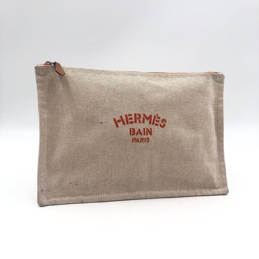 ■商品概要HERMES エルメスニューヨッティングGMフラットポーチフランス製コットンキャンバスベージュ系シルバー金具布タグありラグジュアリー 高級 ハイブランド