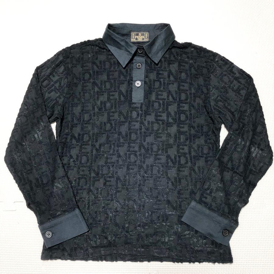 ■商品概要FENDI フェンディ3D状FENDIロゴ総柄長袖ポロシャツ3Dロゴ総柄ロゴボタン透け感伸縮性あり ストレッチ素材イタリア製タグありレディースサイズM~L相当※詳細は下部寸法値を必ずご確認ください派手 ラグジュアリー 高級 ハイブランド