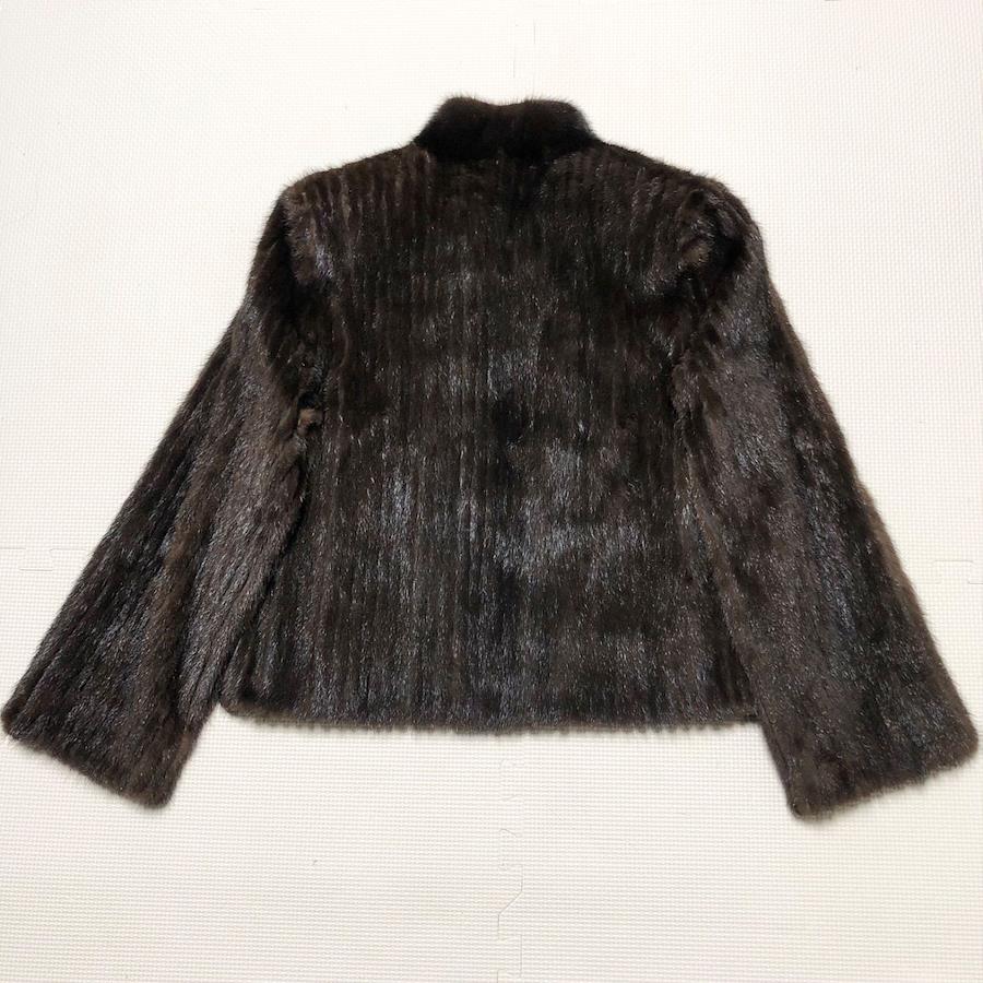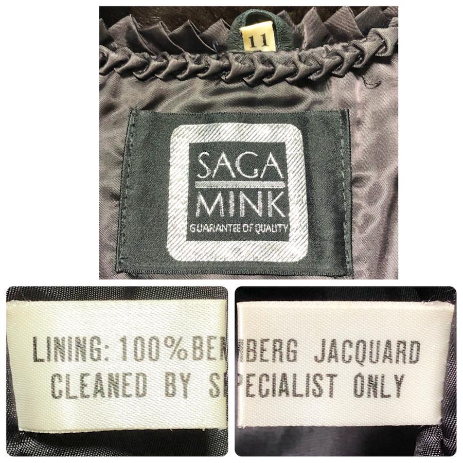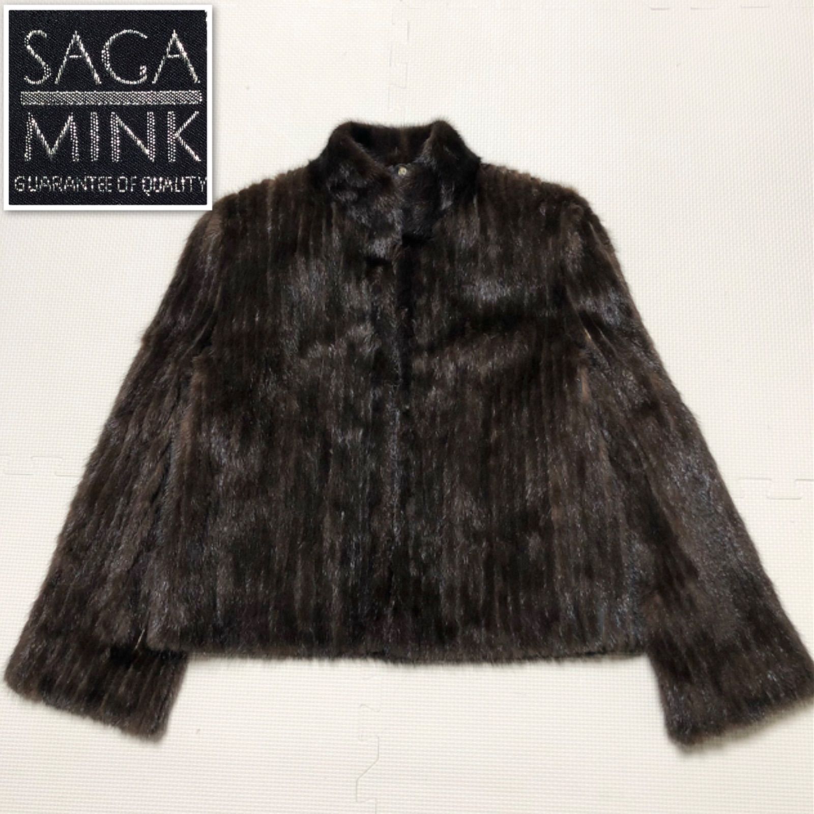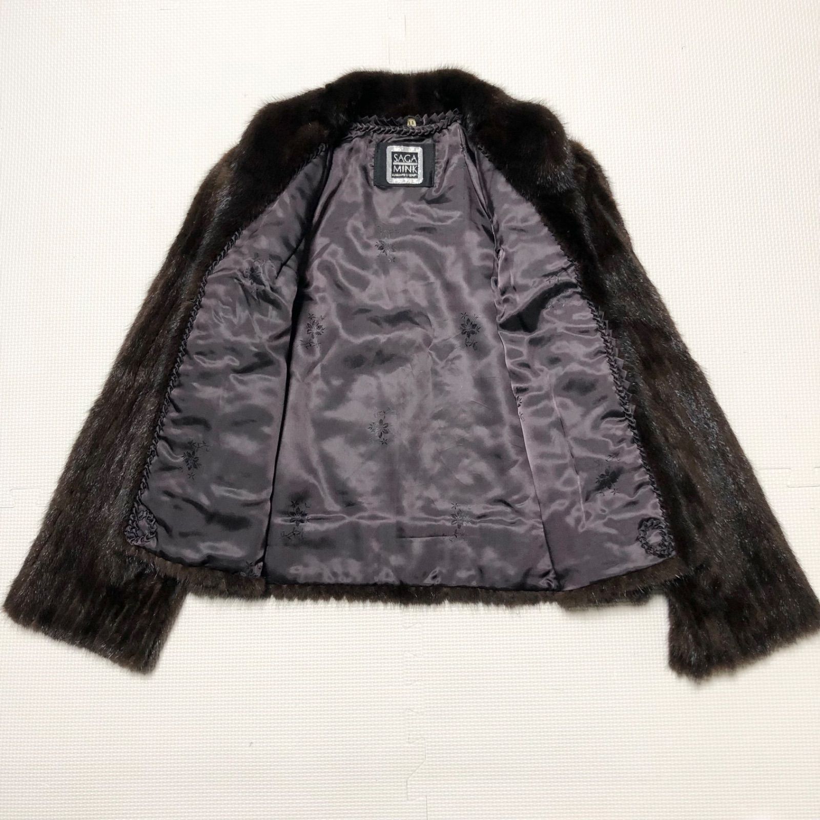 Excellent condition! Silver Saga SAGA MINK short fur coat with stand-up collar, size 11 (equivalent to L), dark brown with floral lining (Bemberg). Women's.
