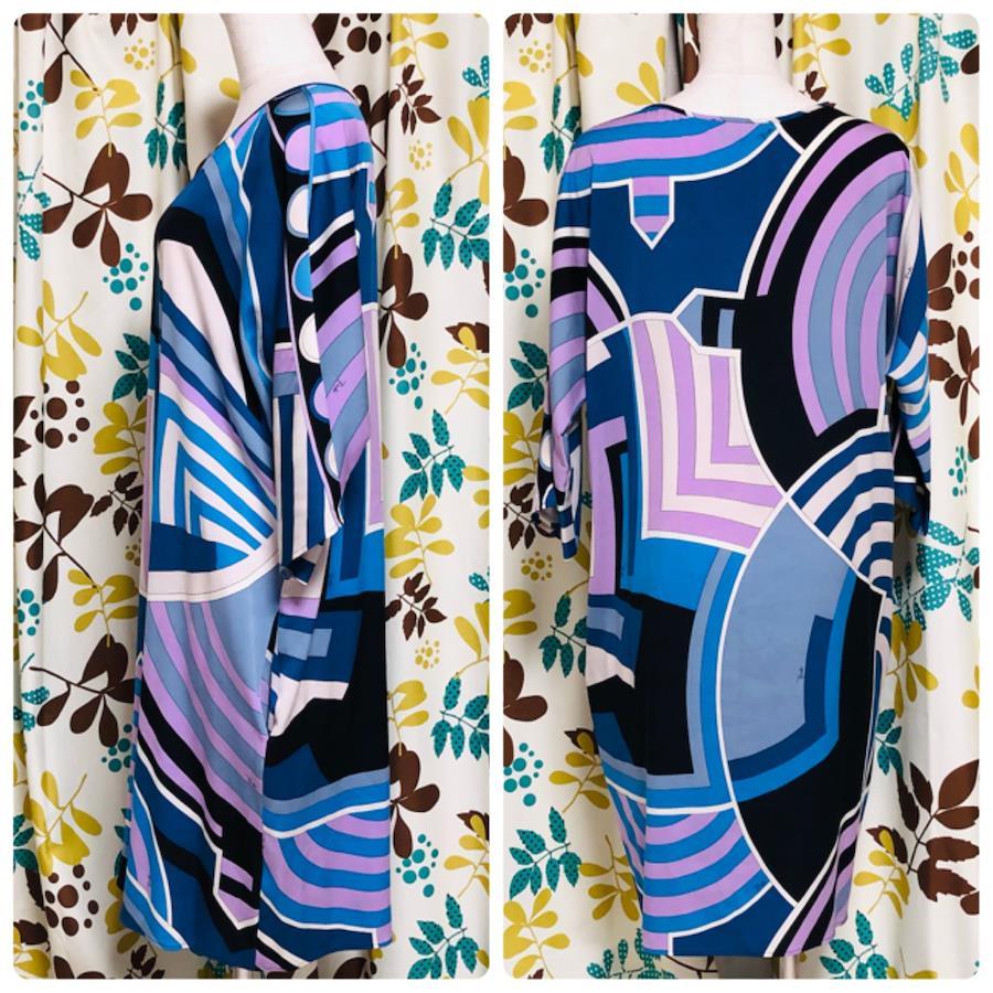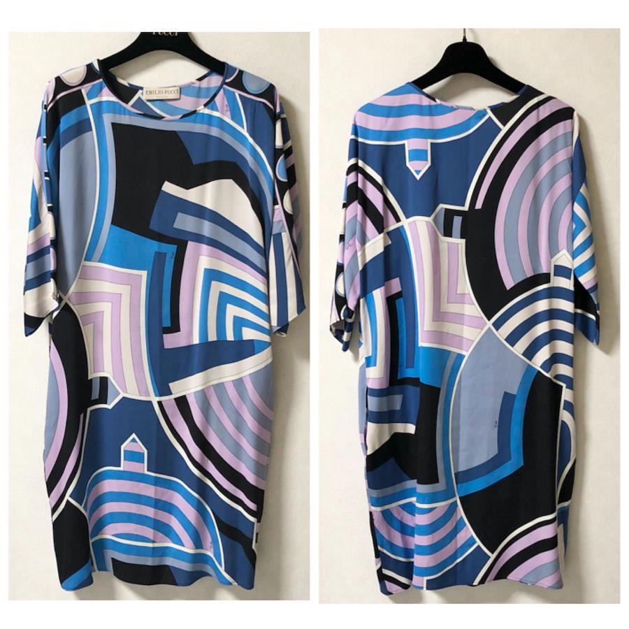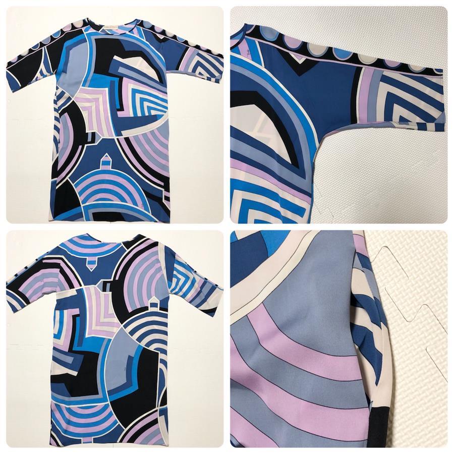 ■商品概要EMILIO PUCCI エミリオプッチ現代美術風総柄 プッチ柄ワンピース七分袖 ひざ丈シルク94%イタリア製size36(S) ※詳細は下部寸法値を必ずご確認くださいマルチカラー※ブラック×ブルー×ホワイト×ラベンダー裏地なし派手高級 ハイブランドパーティー、ラグジュアリー、結婚式、お祝い、式典、入学式、卒業式、イベントレディース