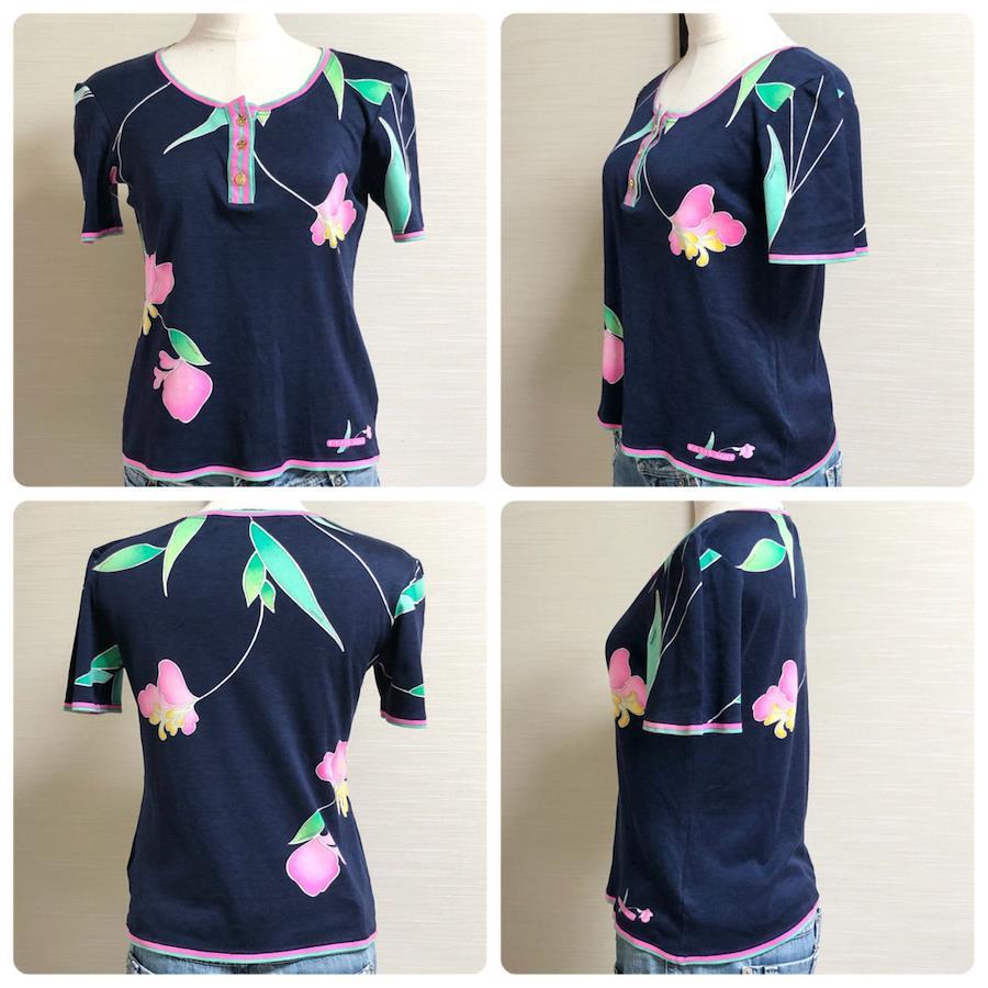■商品概要LEONARD FASHON レオナールファッションヘンリーネック Tシャツ花柄sizeS(胸囲72~80cm)コットン100%金ボタンネイビー×マルチカラーレディースラグジュアリー 高級 ハイブランド