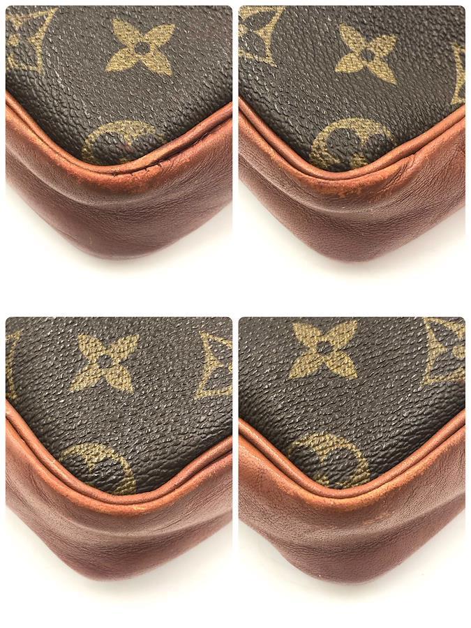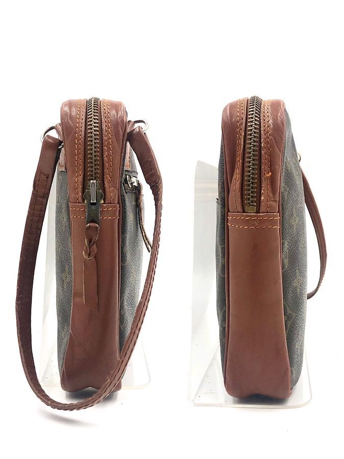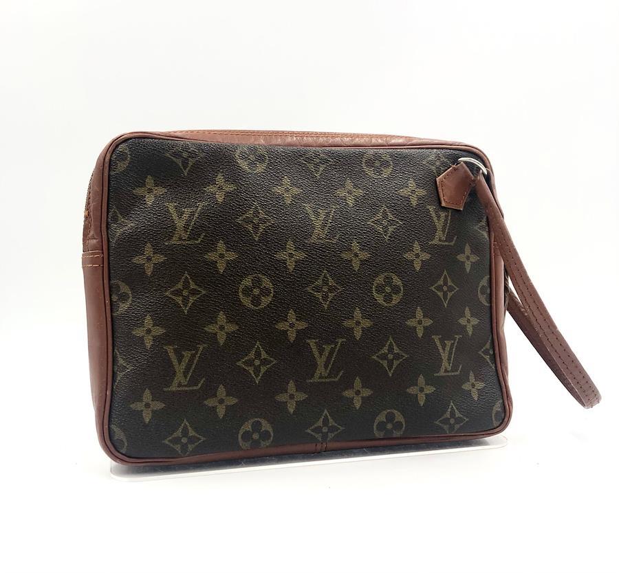 ■商品概要LOUIS VUITTON ルイヴィトンモノグラムサックスポセカンドバッグ クラッチバッグPVC×レザーブラウンECLAIR社ファスナーブラウンストラップ金具と素材から、刻印がない時代(80年代中盤以前)の作品だとわかります