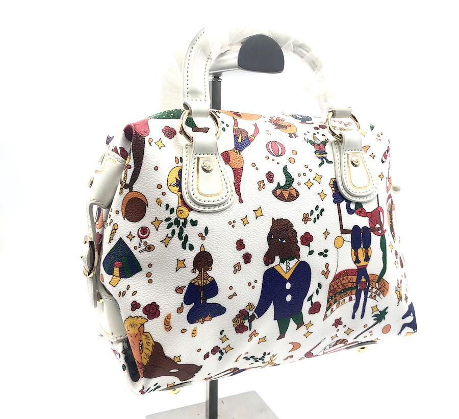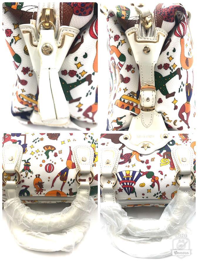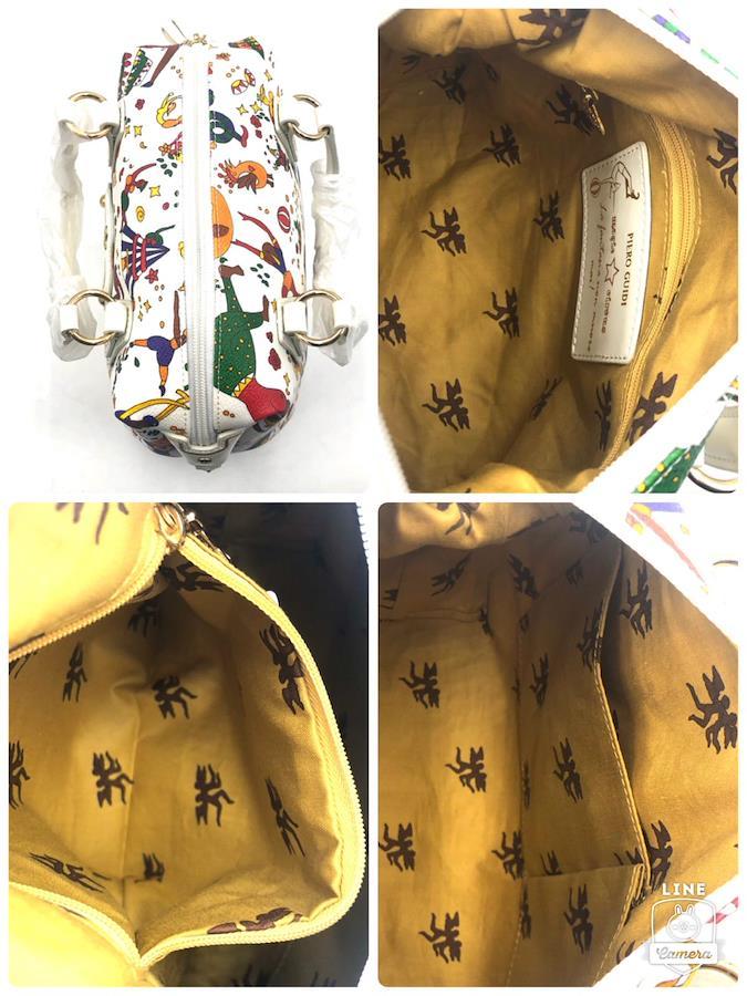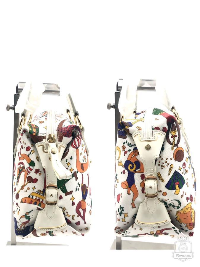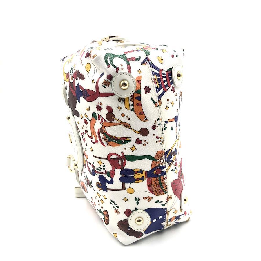 ■商品概要PIERO GUIDI ピエログイディマイクロボストンバッグ ミニボストン ハンドバックPVC×レザーホワイト×マルチカラーサーカス総柄保存袋付きレディース
