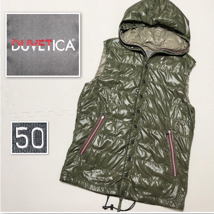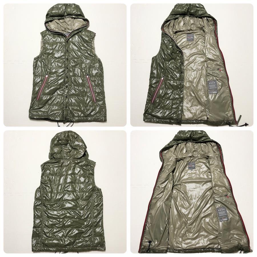 ■商品概要DUVETICA デュベティカダウンベストsize50(サイズL)ナイロン×グースダウングリーン系カーキフルジップドローコードフード フーディーブルガリア製メンズ大きめ春秋冬プレミアムダウン ラグジュアリー 高級 ハイブランドスポーツ カジュアル