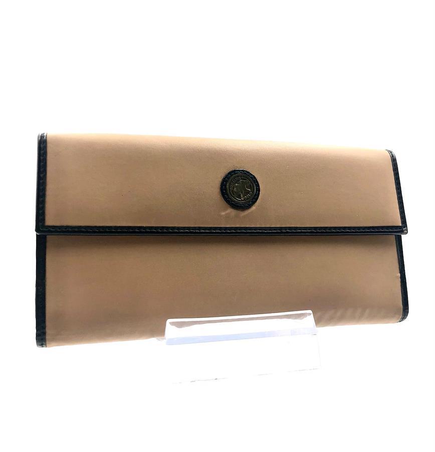 ■商品概要Hunting World ハンティングワールド三つ折り長財布ロゴプレートコーティングキャンバス×レザーブラウンベージュ×ブラックゴールド金具イタリア製刻印ありユニセックス