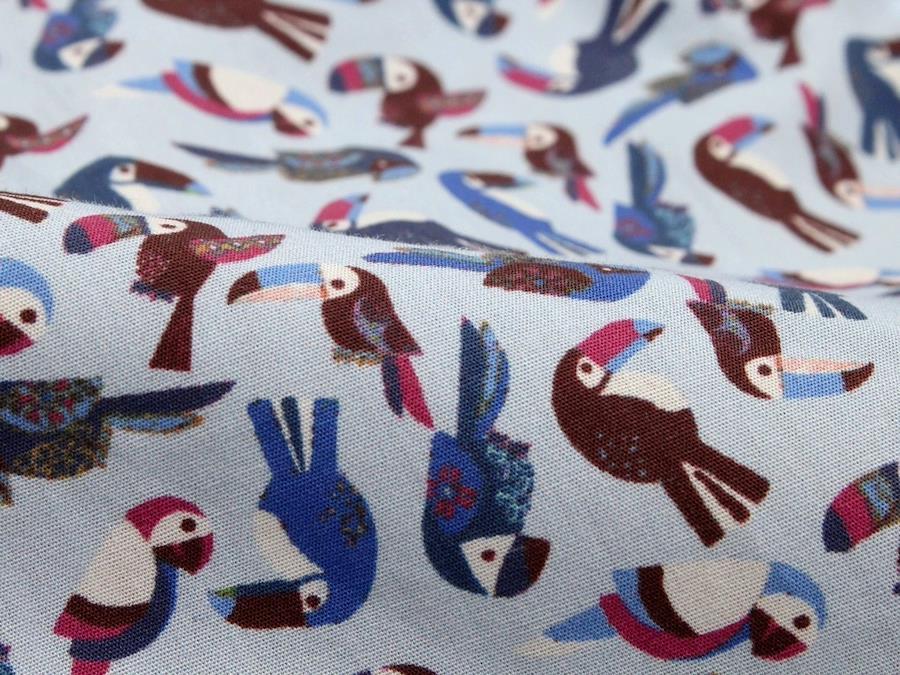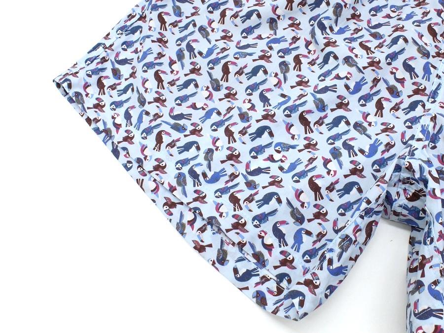 カラフルなオオハシがプリントされています。速乾性のあるコットン素材で、水にぬれた後も快適です。ポケット付き。