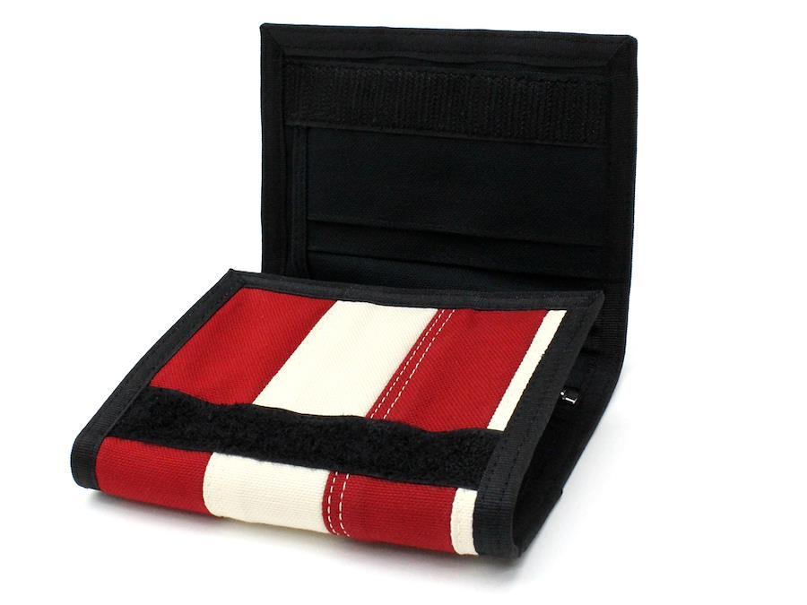 サンローランの星条旗柄マジックテープ式三つ折り財布です。ラグジュアリーブランドのいわゆる『バリバリ系』財布。マジックテープ式だとフラットに畳めるのでコンパクトに持ち歩けるのもポイント。