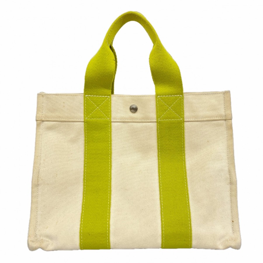 ★SALE【6db1441】エルメス トートバッグ ボラボラMM キャンバス グリーン シルバー金具【中古】メンズ レディース ユニセックス