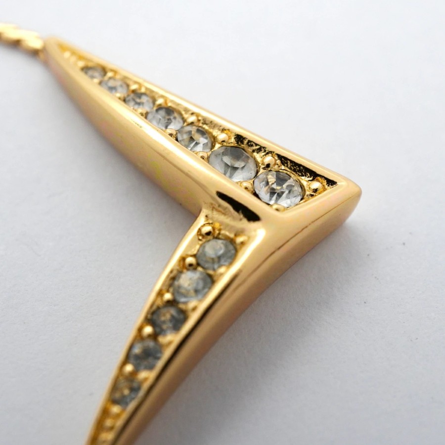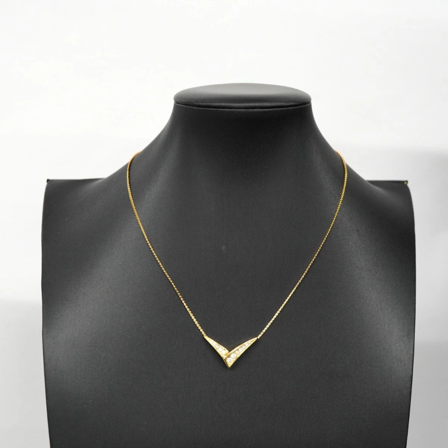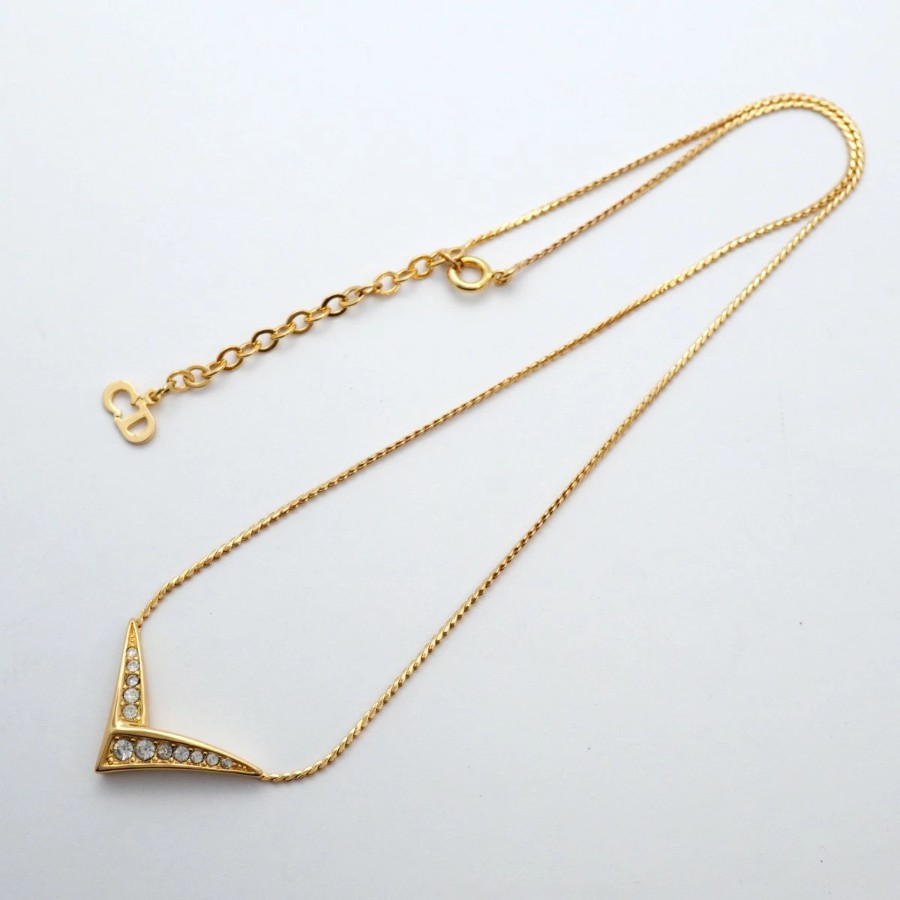 ★SALE【6jcb0912-k】クリスチャンディオール ネックレス GPメッキ ラインストーン ゴールド【中古】レディース