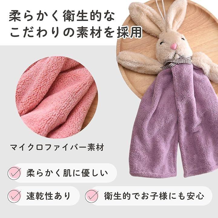 ぬいぐるみのような可愛い「うさぎタオル」は、お子さまやギフトにぴったりのアイテム。やさしい肌触りのマイクロファイバー素材を使用し、吸水性抜群で手や顔を拭くのに最適です。