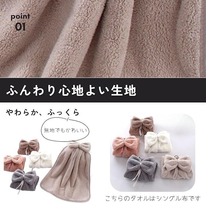 大人可愛いニュアンスカラーで無地のおりぼんのループ付きハンドタオル。