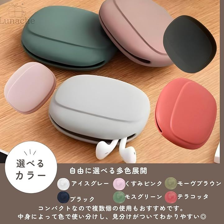 イヤホンとおそろいの色にしたり、入れるものによってカラーを変えたりするとわかりやすく、便利です。