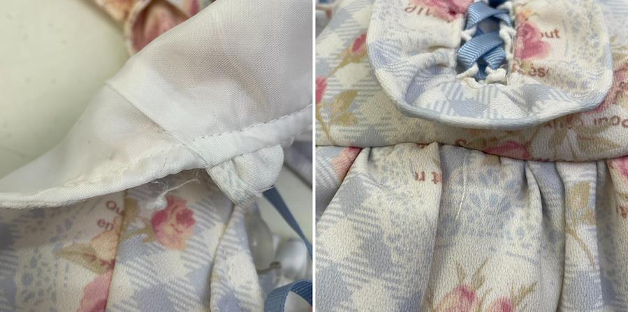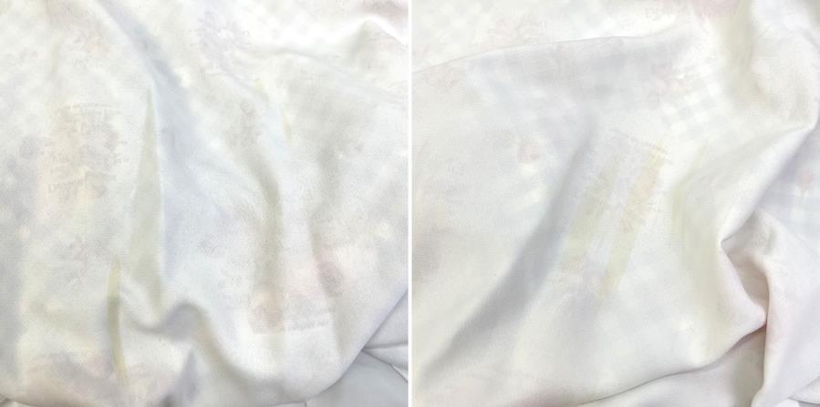 ・スカート前面、黄色い汚れあり(内側も)糸ほつれあり