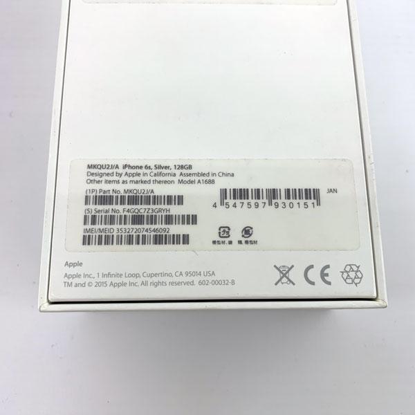 【品番】 iPhone6S 128GB MKQU2J/A シルバー【製造番号】 353272074546092【OS】 iOS 11.0.3【MF】 4.00.01【利用制限】 ○【付属品】 箱・冊子類・SIMピン・イヤホン・ACアダプタお買い上げされた商品の初期不良に伴って発生した各種損害につきましては、一切の責任を当社は負いかねます。契約事務手数料、SIMロック解除手数料等、各キャリアとお客様の間で発生する諸費用につきましては返金できません。上記内容をあらかじめご了承ください。[ジャンク品・ジャンク扱い品の説明]ジャンク品:動作の確認が全くできないもの・不良品ジャンク扱い品:動作の確認が一部できないもの・一部不良品本来の商品として成り立たない商品。傷・汚れ・折り目・割れ・劣化・改造・変形・破損等のダメージがある物になります。クリーニング・メンテナンスはしていません。