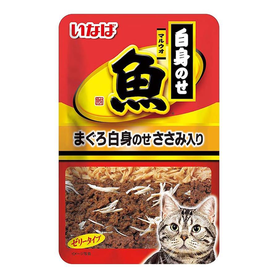 血合肉をベースにまぐろの白身と、猫ちゃんの喜ぶ素材をトッピング。食べきりサイズ。ゼリーでコーティングしているのでするっと出ます。ささみ入り。
