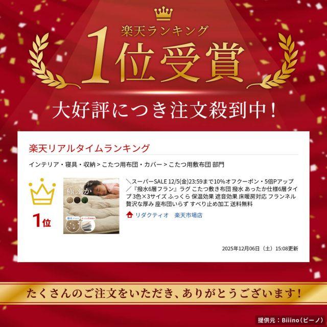 『撥水6層フラン』ラグこたつ敷き布団3カラー×3サイズ