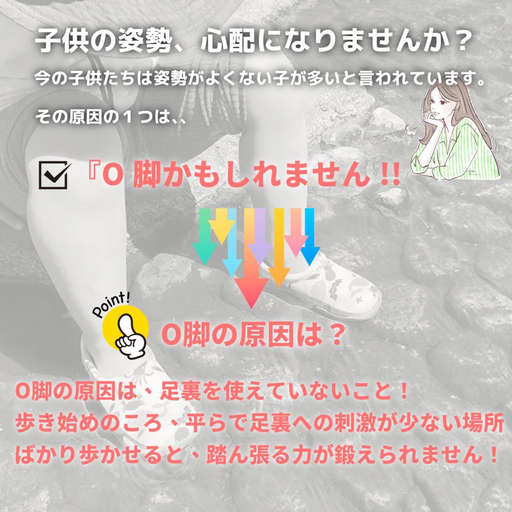 商品説明 | 子供の成長を考えた、姿勢よく歩ける 新型SkippOn オーストラリア ビクトリア大学教授監修のインソール「ISEAL」を使用しています。 『雨の日も、晴れの日もスキップして出かけよう♪』をコンセプトに、 履きやすさを追求し、機能性アップ・大幅軽量化にも成功しました。 1、バランス向上・・・インソールの突起が足にかかる圧力をコントロールし、身体の重心を安定させるため、着用時の歩行バランスを向上させます。また、О脚補正に効果が期待できます。 2、つまづき防止・・・ソール底がゴムで滑りにくくなっています。さらに歩行時の足の圧力が外へ行きすぎない様にコントロールする事で、捻挫予防に効果が期待できます。 3、水遊びもOK・・・乾きやすい素材で出来ているので、水遊びにも最適です。インソールは取り外しができるので簡単に洗えます。 4、自分で履ける・・・紐やマジックテープが無く柔らかい生地の為、かかとのテープ使って簡単に脱ぎ履きができます。 5、クッション性・・・アッパーに柔らかいクッション素材を使用しているので、足に心地よくフィットします。 ※インソールの効果には個人差があります。また着用時のみ効果が持続します。 |