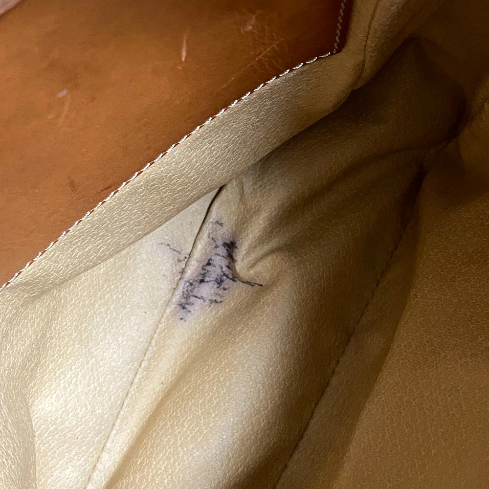 状態 | 【外・表面】スレ、キズ、ヨレ、汚れ、黒ずみ、ヤケ、シワ 【外・ハンドル-ストラップ】スレ、キズ、汚れ、黒ずみ、ヤケ、シワ、コバ剥がれ、亀裂 【外・コーナー】スレ、キズ、汚れ、黒ずみ、コバ割れ、コバ剥がれ 【外・形状】型崩れ 【内側】スレ , キズ , ヨレ , ペン跡 , 汚れ , 黒ずみ , シミ 【ファスナー部分】スレ、キズ、剥がれ、くすみ 【におい】カビ 【金具部分】スレ、キズ、汚れ、錆、くすみ、変色、緑青 内側破れ ほつれ有 ペン跡有 |
