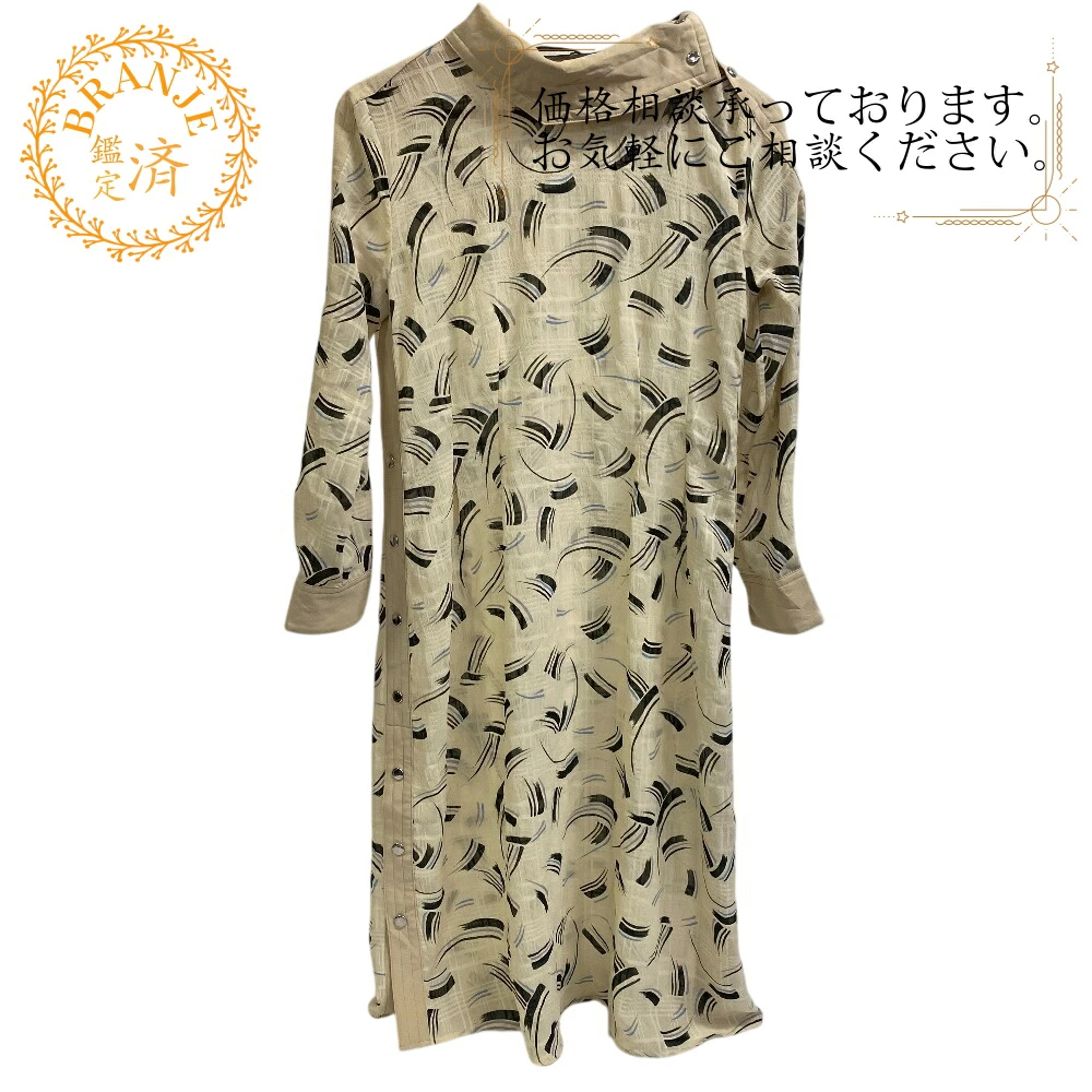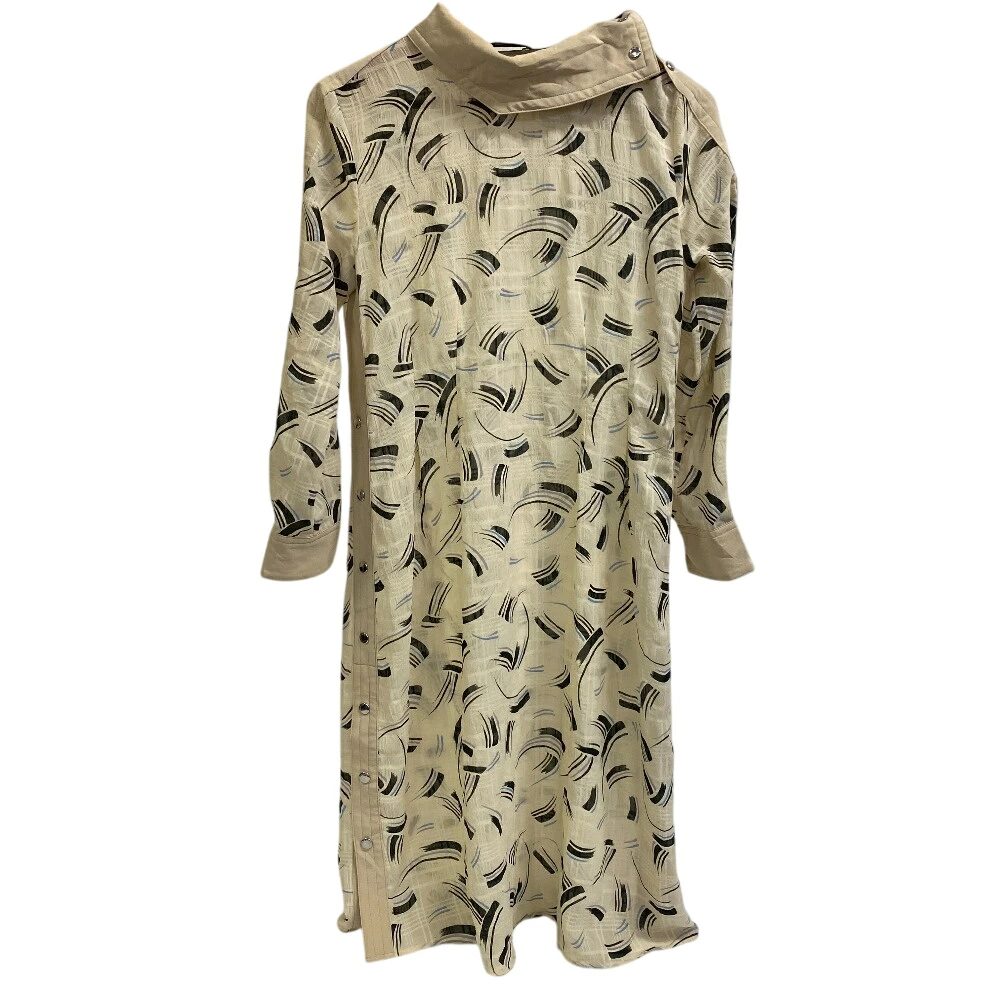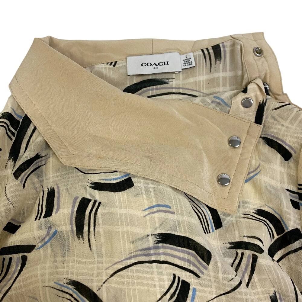 商品名 | COACH/コーチ 総柄 肩ボタン ロングワンピース 抽象模様 ミモレ丈 長袖 ワンピース ベージュ レディース |