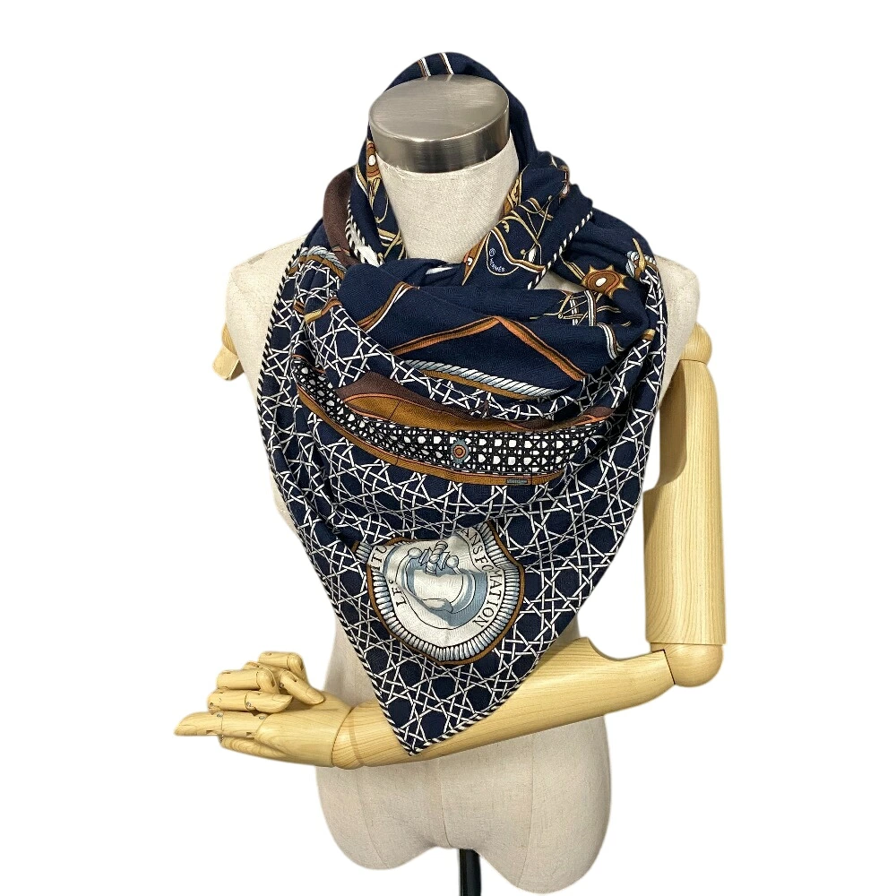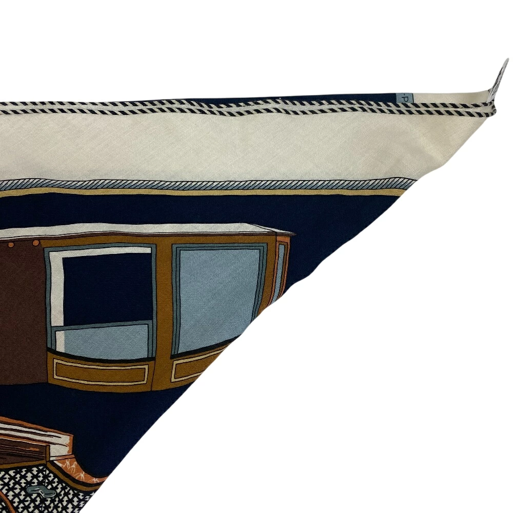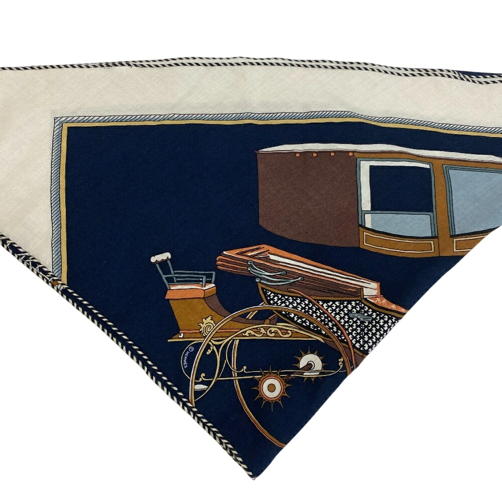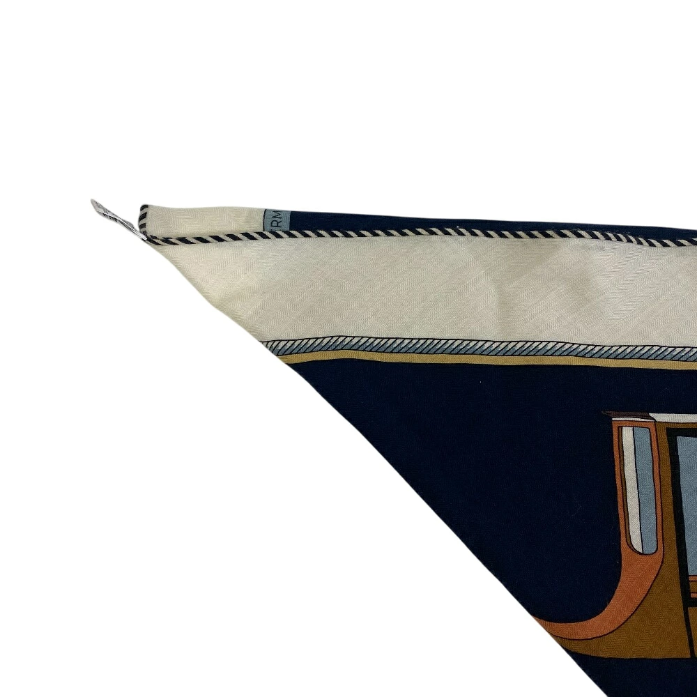 商品名 | HERMES/エルメス LES VOITURES TRANSFORMATION トライアングル ジェアン 折り畳み式幌馬車 スカーフ ネイビー レディース |