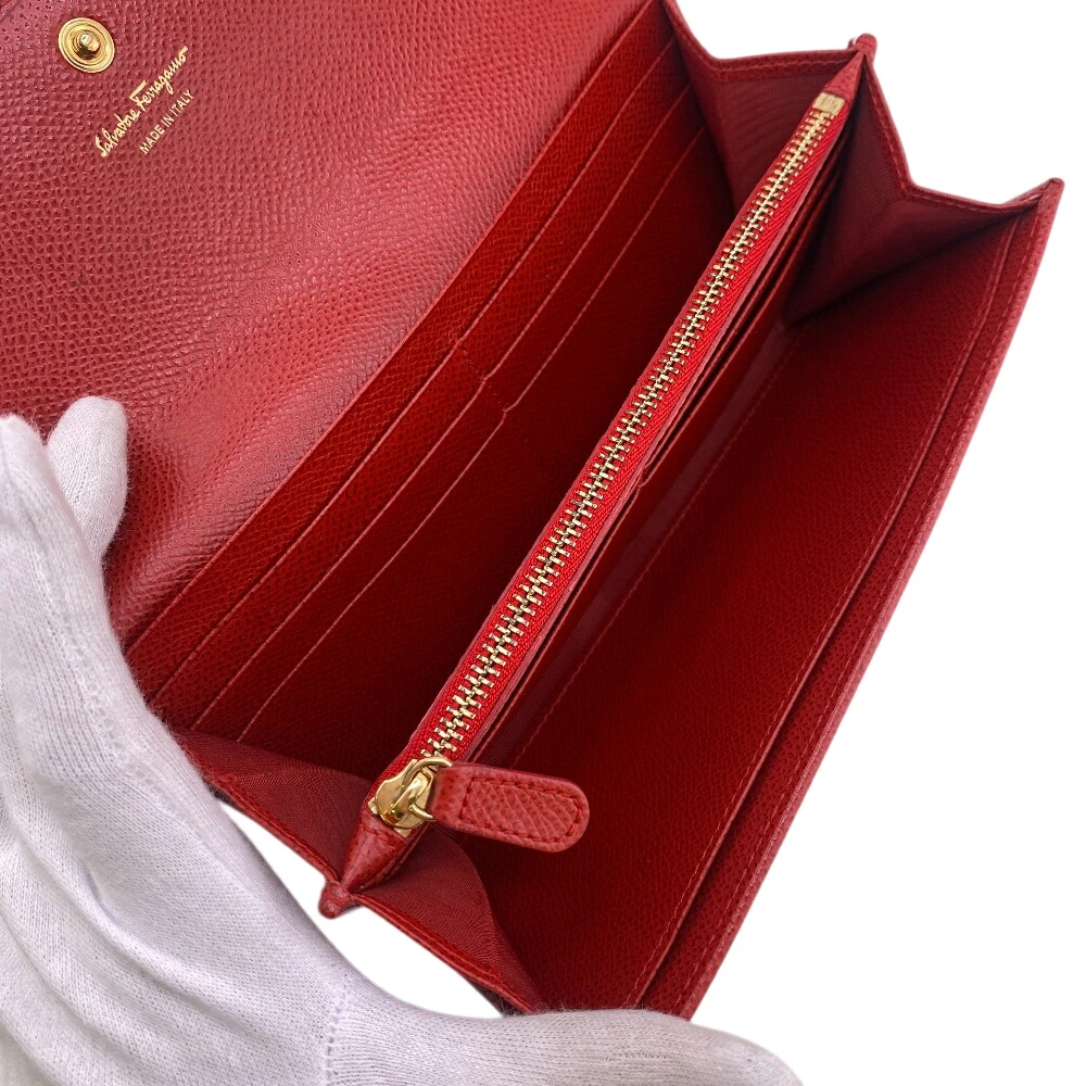 商品名 | Salvatore Ferragamo/サルヴァトーレフェラガモ JP-22-D149 ガンチーニ フラップ 長財布 レッド レディース |