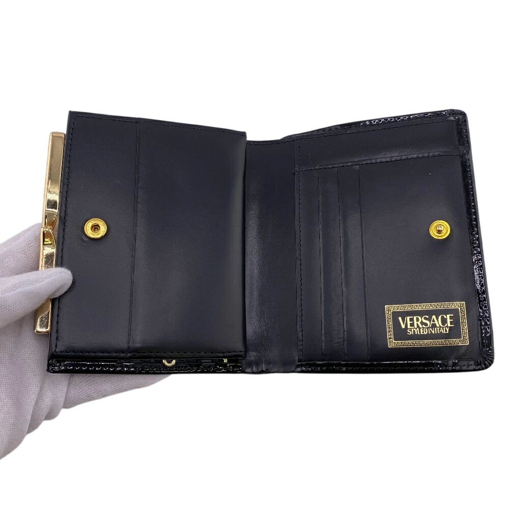 商品名 | VERSACE/ヴェルサーチ がま口 メドゥーサ 二つ折り財布 ブラック レディース |