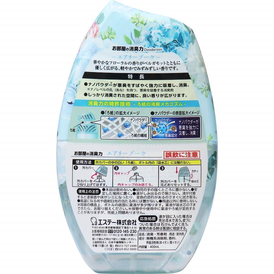 〇商品仕様お部屋の消臭力 エアリーブーケ 400ML×18点セット単品サイズ435×187×324(mm) 容量400ML(出典:エステー)