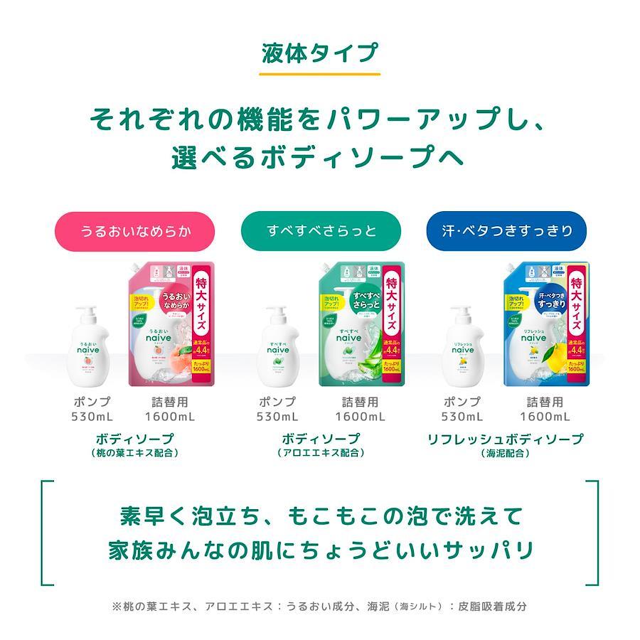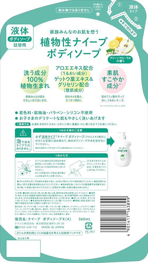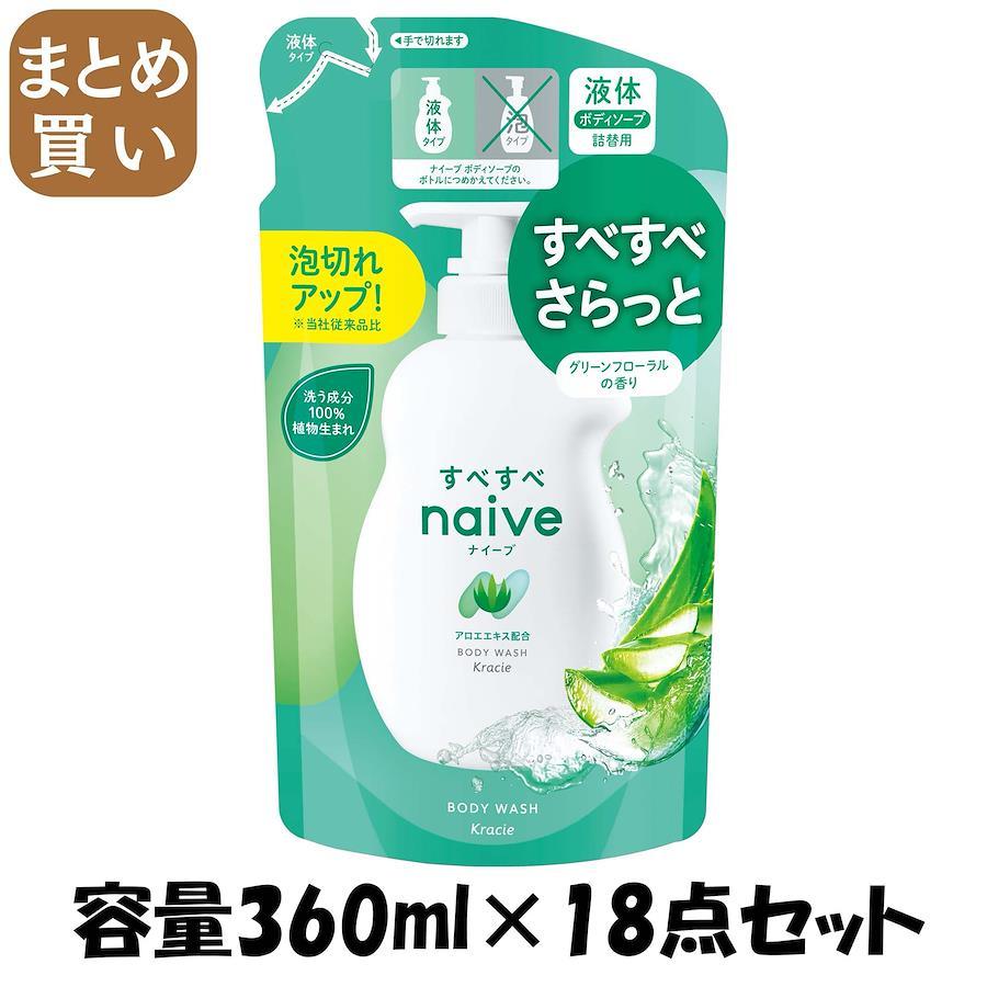 〇商品仕様ナイーブ ボディソープ(アロエエキス配合)詰替用×18点セット単品サイズ361×250×237(mm) 容量360ML(出典:クラシエホームプロダクツ)
