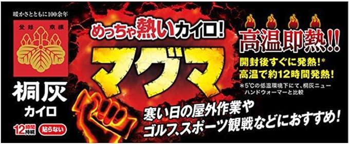 この商品について 【まとめ買い】 桐灰化学 「めっちゃ熱いカイロ マグマ」すぐに高温・屋外で冷めない 12時間持続・貼らないカイロ(屋外作業/ゴルフ/スポーツ観戦など)10個入 × 2個・計20個