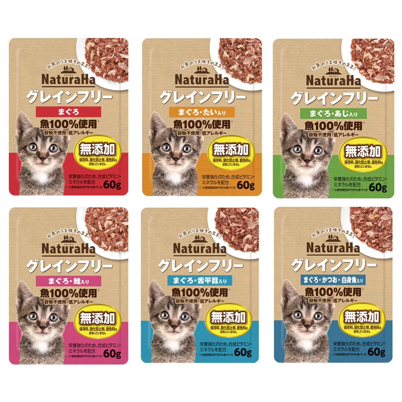 愛猫にお魚を100%使用したNaturaHaグレインフリー 低アレルギーで消化しやすいグレインフリー(穀物不使用)の総合栄養食 各フレーバー6種を2袋ずつまとめました。