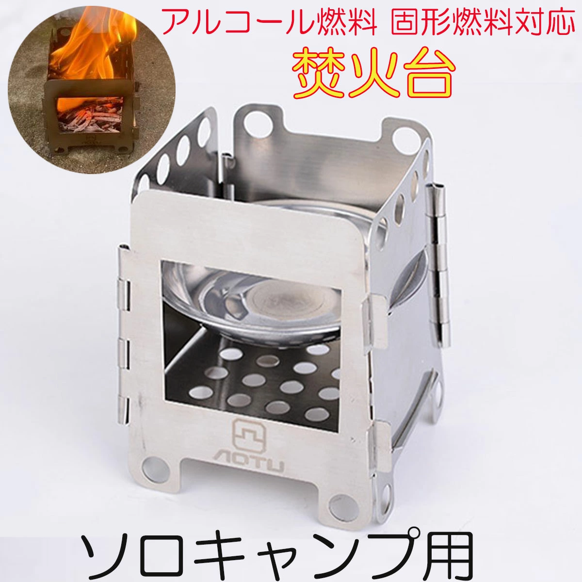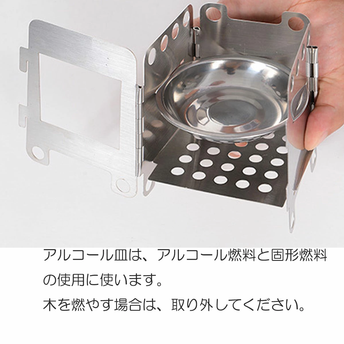 携帯性に優れ、折りたたむと手のひらサイズの軽量、コンパクトな焚火台。
