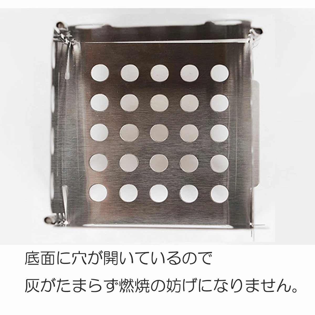 底面とサイドパネル上部2箇所に通気窓があるので、燃焼源を効率よく燃やし、コンパクトながら十分な火力を得ることが出来ます。