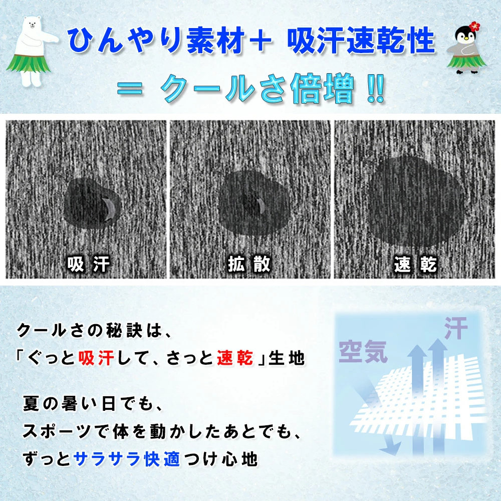 通気性、速乾性に優れ、呼吸がしやすいアイスシルク(ポリエステル)で作られています。