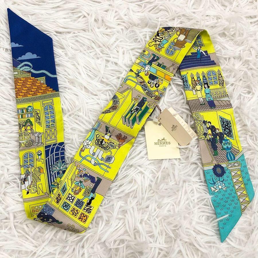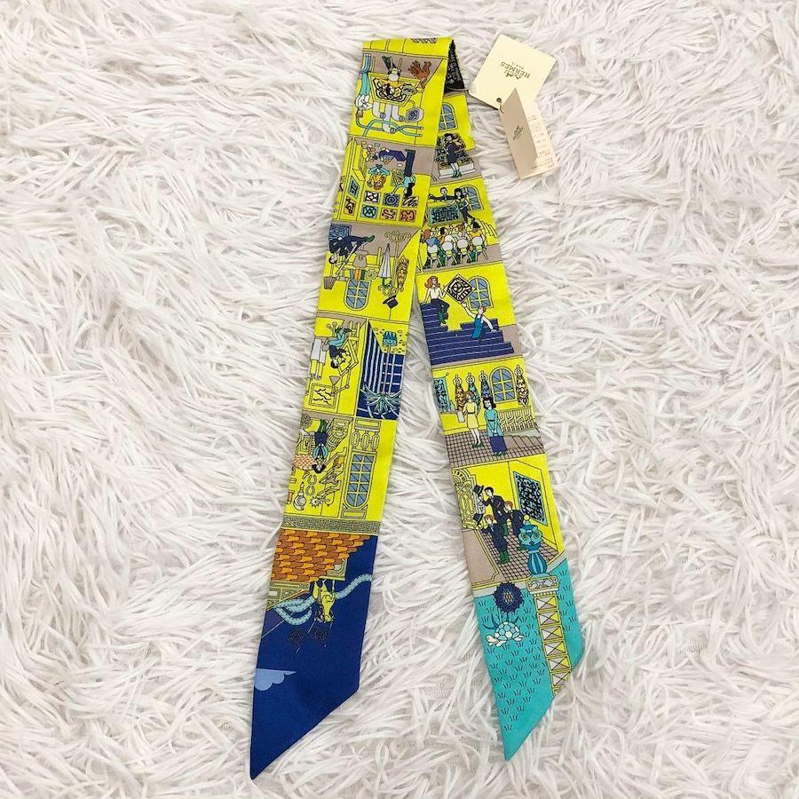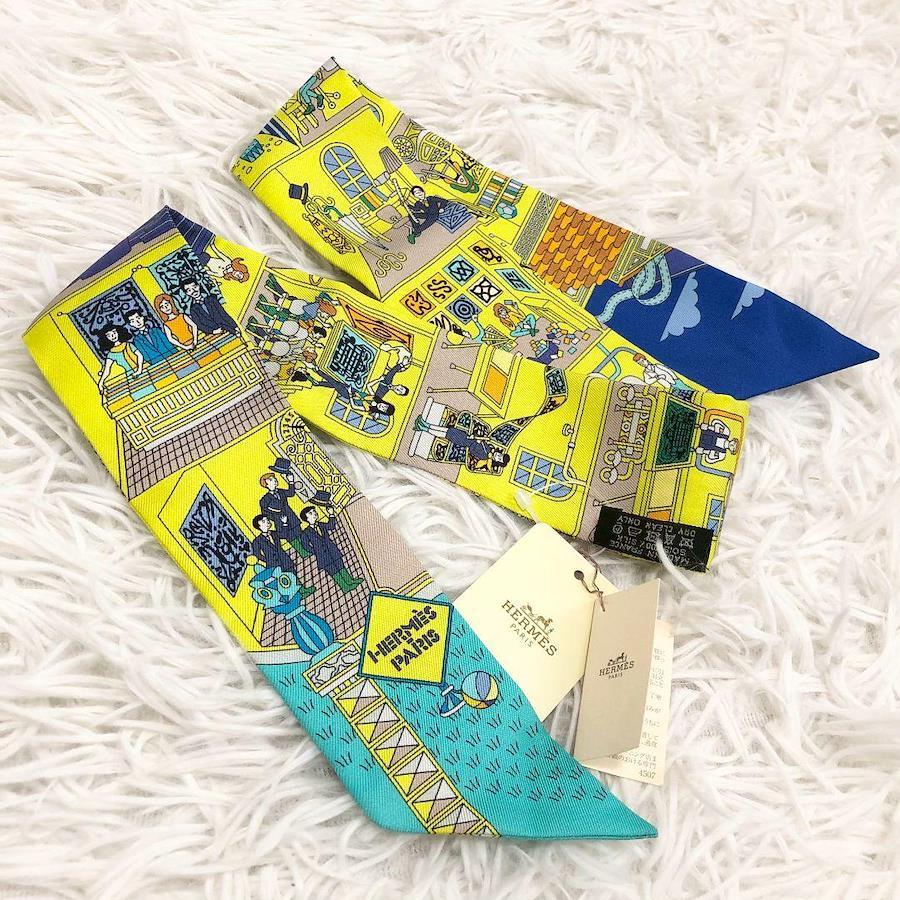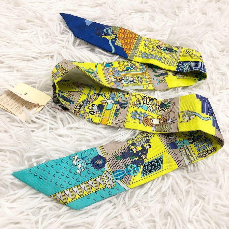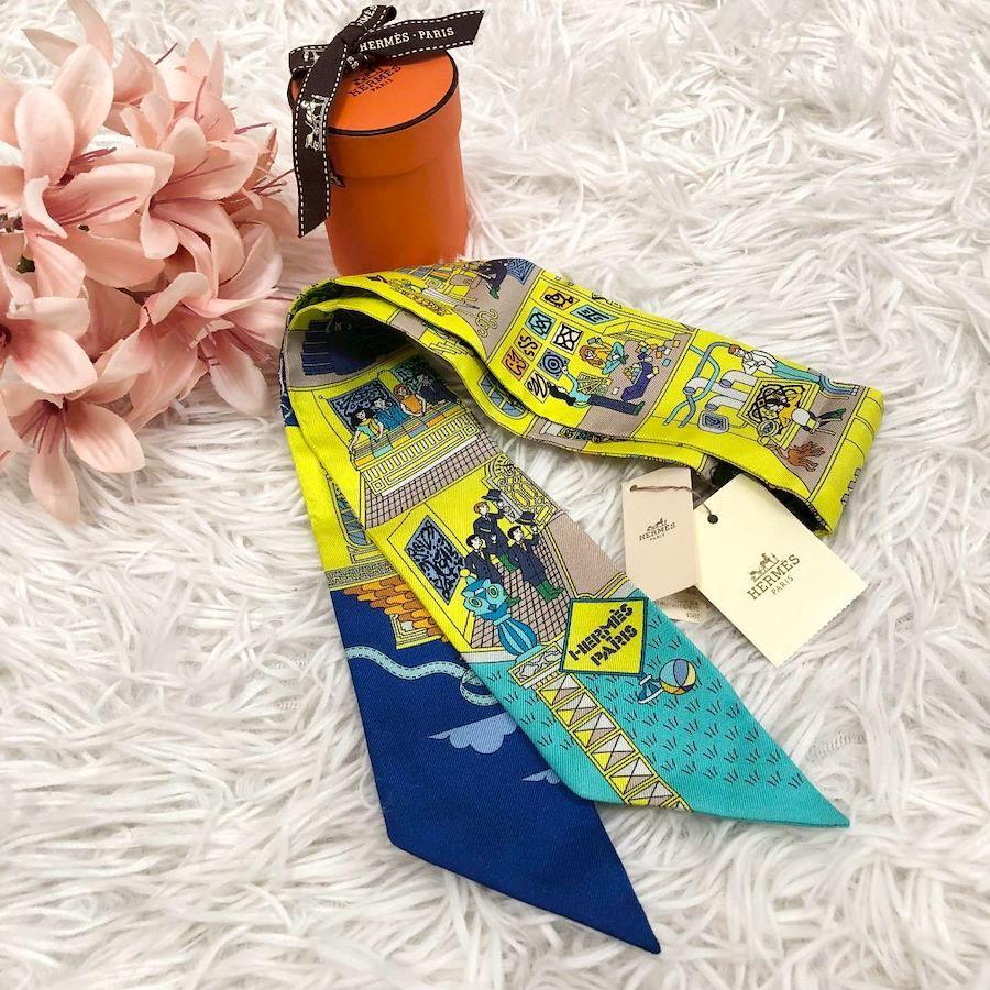 エルメス ツイリー 未使用品 イエロー×ブルー