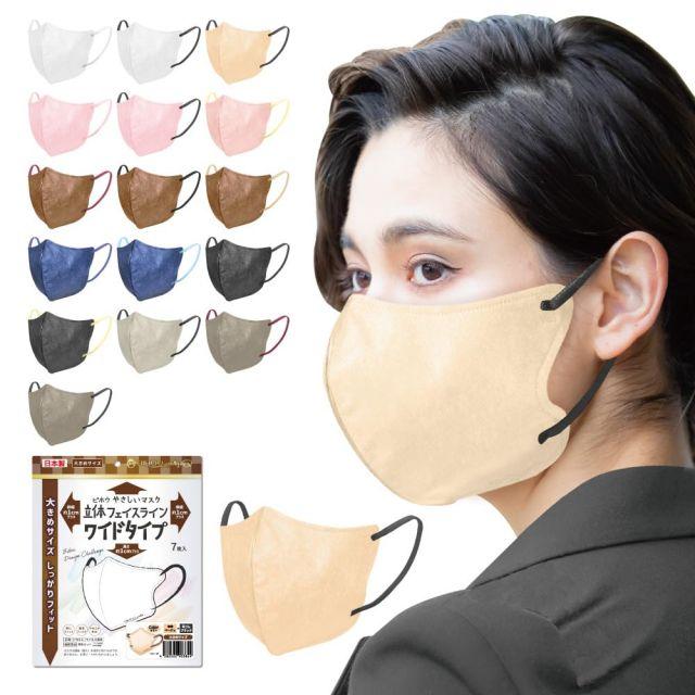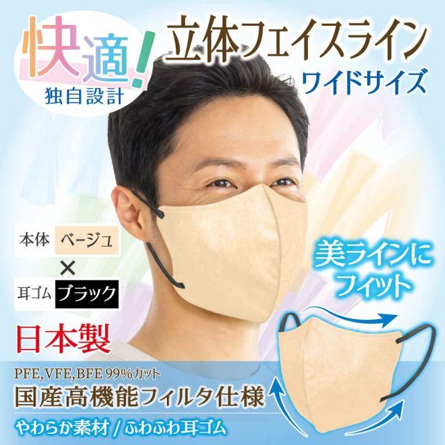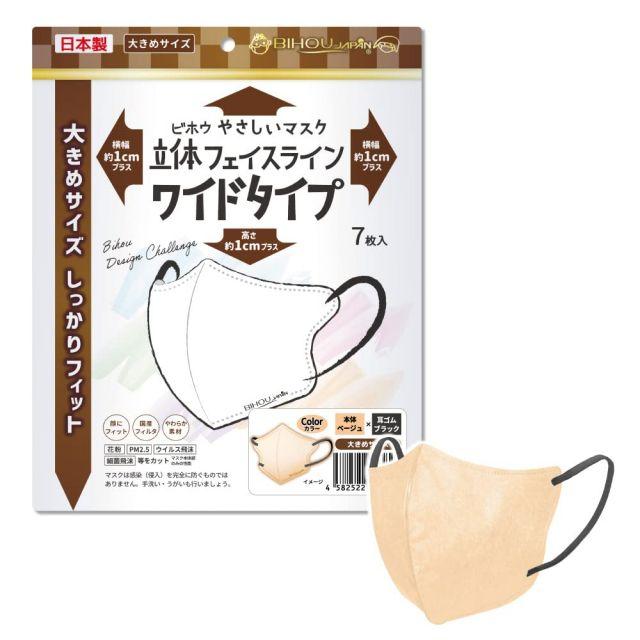 サイズ:ワイド・1袋◆商品名:【ビホウマスク安心の日本製自社製の国産高機能フィルタ使用!フェイスラインにしっかりフィット頬まで覆うワイドサイズで身体の大きな方にもおすすめ!多彩なカラーバリエーション個性に合わせて選べる楽しさ!】立体フェイスラインやさしいマスク(ベージュ×ブラック)ワイドサイズ7枚入1袋